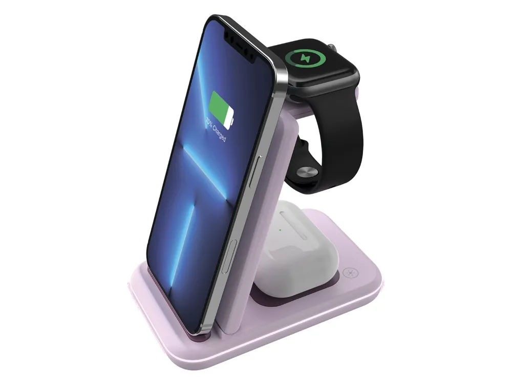 Зарядная станция Canyon WS-304 избавит от беспорядка на столе или прикроватной тумбе. Заряжайте все ваши устройства одновременно - станция совместима с большинством смартфонов, поддерживающих беспроводную зарядку, включая iPhone, также она подходит для зарядки наушников с беспроводным стандартом зарядки Qi и Apple Watch. Эффективное расстояние зарядки составляет до 8 мм. Заряжайте ваши гаджеты, не снимая чехлов. Интеллектуальный чипсет Chip vision поддерживает быструю зарядку, при этом контролируя ее параметры и предотвращая перегрев. Противоскользящее покрытие обеспечит защиту гаджетов от падения, а светодиодная подсветка позволяет контролировать ситуацию одним быстрым взглядом. Кроме того, устройство имеет складной корпус, поэтому ее удобно брать с собой в путешествия.