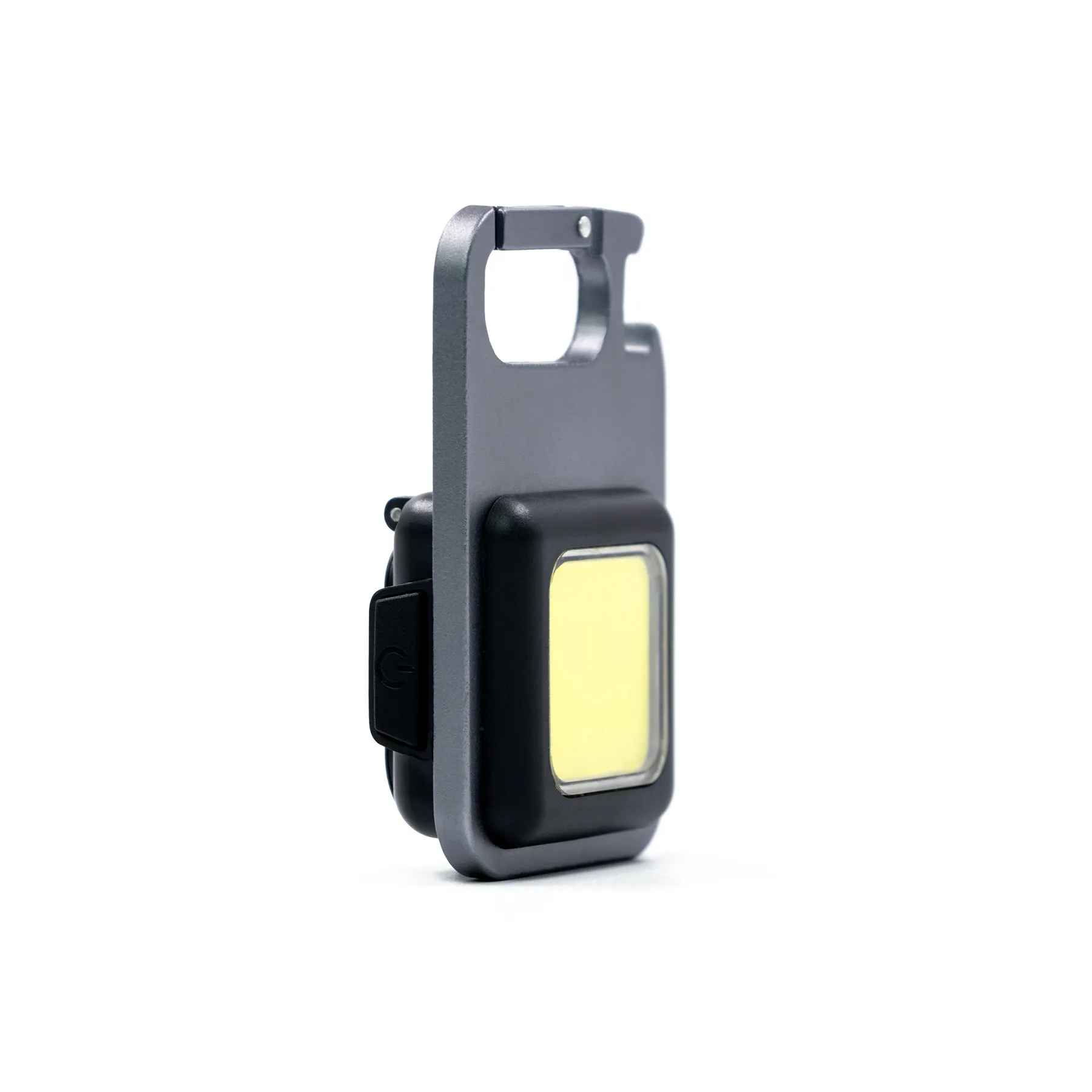 Компактный алюминиевый фонарь-мультитул с COB-светодиодом. Оснащён магнитным основанием для крепления к металлическим поверхностям, встроенной подставкой, карабином, открывалкой для бутылок и креплением под штатив. Максимальная яркость 500 люмен, аккумулятор 500 мА·ч, до 4 часов работы в стандартном режиме. Зарядка через USB-C, четыре режима освещения: экономичный, стандартный, мощный и строб (мигающий). Имеет влагозащиту уровня IPX4, устойчив к дождю и брызгам.