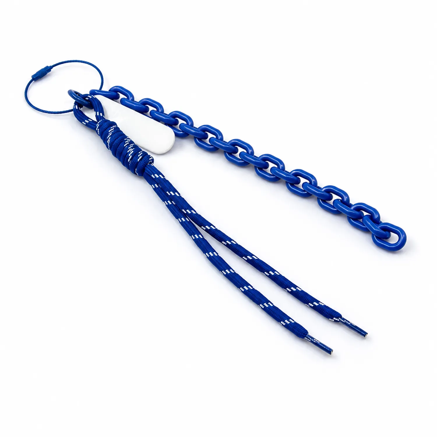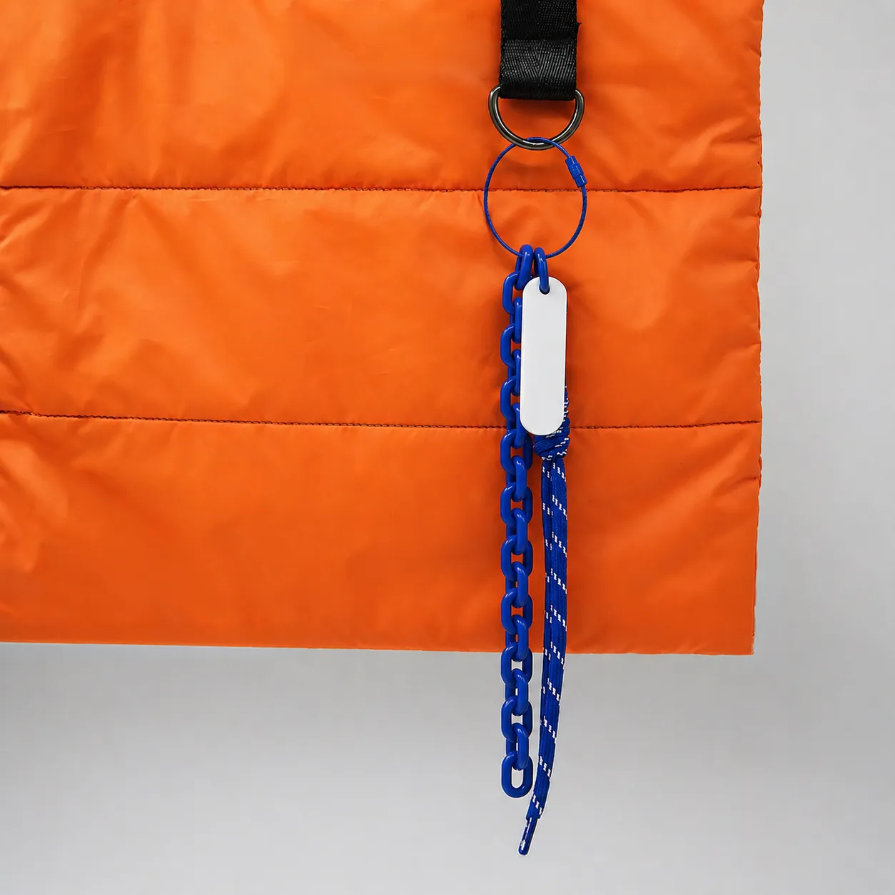 Четыре элемента в едином стиле создают плотный цветовой блок, а белый брелок добавляет контраст и становится чистой площадкой для вашего логотипа.