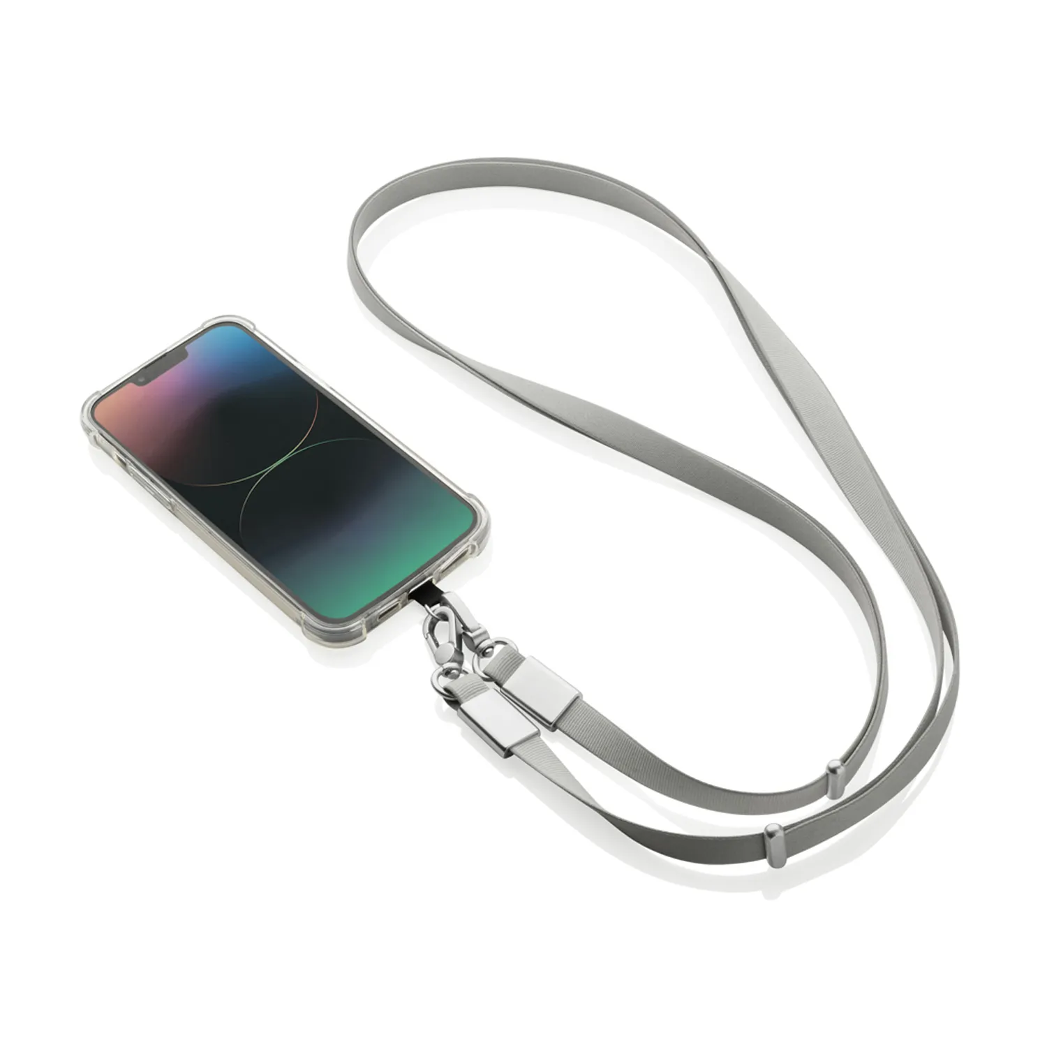 Nivo — это универсальный ремешок-держатель для телефона на шею или через плечо, который надежно фиксирует устройство и всегда держит его под рукой. Изготовленный из переработанного rPET с элементами из алюминия премиум-класса, Nivo сочетает прочность с чистым современным дизайном. Широкий высококачественный ремень обеспечивает максимальный комфорт при ношении, что делает его идеальным для ежедневного использования. Универсальная и надежная конструкция подходит практически для всех моделей телефонов, но использовать держатель можно только в сочетании с защитным чехлом. Длину ремня можно легко регулировать от 200 до 120 см, что гарантирует идеальную посадку. Изделие изготовлено из переработанного rPET и переработанного алюминия, что подтверждено сертификатом RCS (Recycled Claim Standard). Общее содержание вторичного сырья составляет 18% от общего веса изделия. Nivo не содержит ПВХ, а упаковка выполнена из безпластиковых материалов, сертифицированных по стандарту FSC®.