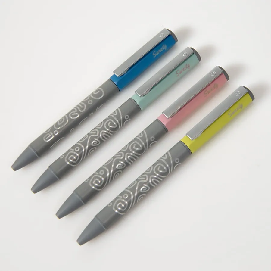 SWEETY - верная спутница всех, кто стремится успеть все на свете, сохранив внутреннюю гармонию. Строгость линий в сочетании с нежными пастельными оттенками, матовый серый корпус с серебристо-зеркальной гравировкой - сбалансированный и вдохновляющий образ, настраивающий на творческую волну. SWEETY - деталь, которая подчеркнет активную жизненную позицию и умение сохранять позитивный настрой в динамичном ритме рабочих будней. Это не только красивый, но и удобный инструмент с плавным поворотным механизмом и мягко пишущим стержнем с чернилами Dokumental. Pantone, близкий к 344С. Стержень Parker style refill, толщина пищущего узла 1 мм, чернила Dokumental, синие. Алюминиевый корпус, пластиковые носик, кольцо и заглушка клипа, стальной клип. Угол поворота корпуса: 180°, механизм с доводчиком.