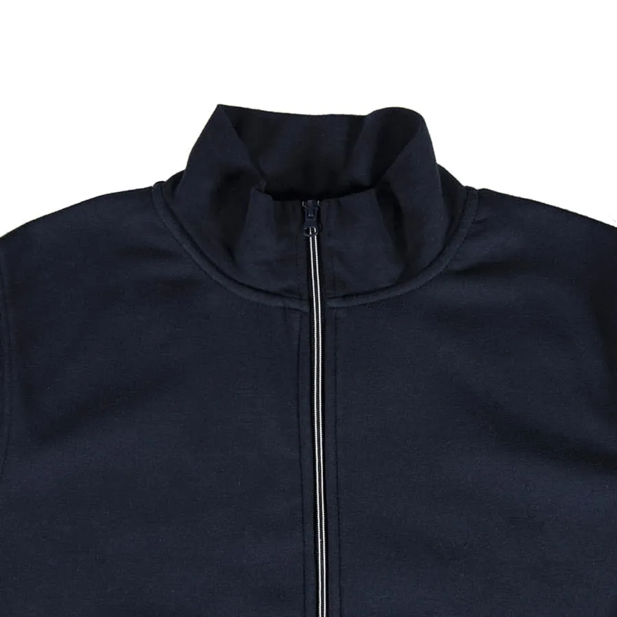 Основная ткань: цвет, близкий к Pantone 532 C Удобный воротник-стойка. Контрастная облегченная пластиковая молния. Два передних кармана на молнии. Декоративная тесьма по горловине спинки. Манжеты, воротник и низ изделия обработаны рибом 1*1.