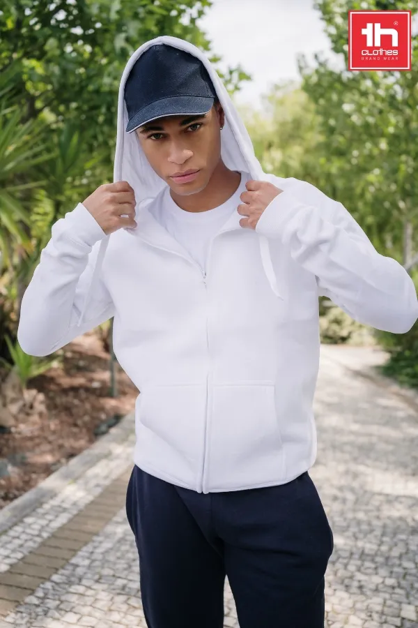 Толстовка с капюшоном на молнии. Внутренняя сторона с начёсом. Подкладка в капюшоне из тонкого трикотажа в тон основного полотна. Потайная центральная молния. Манжеты и низ изделия обработаны рибом 1х1.