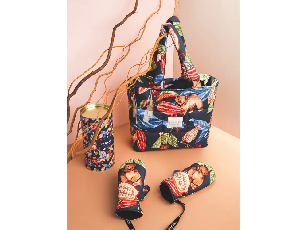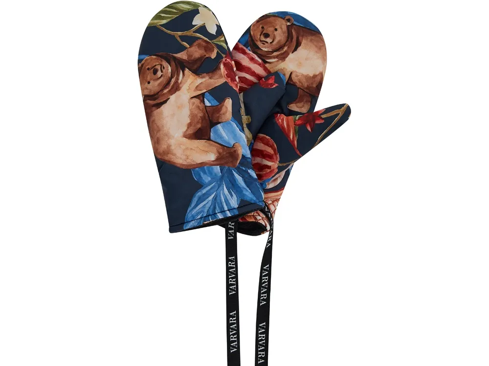 Утепленные варежки с принтом "Мишки в шоколаде". Верхняя ткань выполнена из непромокаемой курточной ткани, внутри флисовый подклад и утеплитель - холлофайбер. Температурный режим до -20 градусов. Варежки на ленте, "как в детстве". Принт «Мишки в шоколаде» продолжает серию сказочных принтов Varvara. Задорные медвежата прячутся в листьях и плодах вечнозеленого какао, создавая яркий, эмоциональный узор. Варежки упакованы в подарочный тубус. Бережный уход: - Ручная стирка при температуре не выше 30 градусов. - Сушка в горизонтальном положении. * фрагмент принта может отличаться от представленного на фото