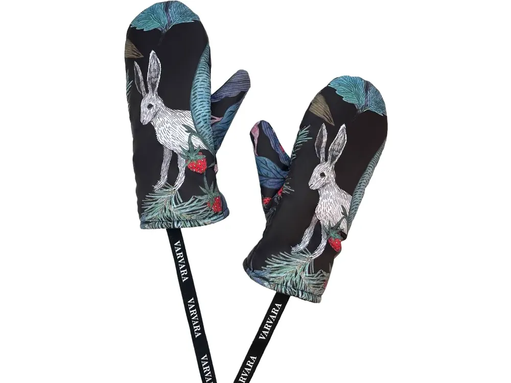 Утепленные варежки с принтом "Зайцы". Верхняя ткань выполнена из непромокаемой курточной ткани, внутри флисовый подклад и утеплитель - холлофайбер. Температурный режим до -20 градусов. Варежки на ленте, "как в детстве". Авторский принт написан художницей вручную специально для российского бренда Varvara. Художница размышляла на тему русской природы, культуры и искусства - тут и лесная земляника, и сочная зелень, и конечно, сказочные зайцы - как будто только что сошли с полотен В. Васнецова. Варежки упакованы в подарочный тубус. Бережный уход: - Ручная стирка при температуре не выше 30 градусов. - Сушка в горизонтальном положении. * фрагмент принта может отличаться от представленного на фото