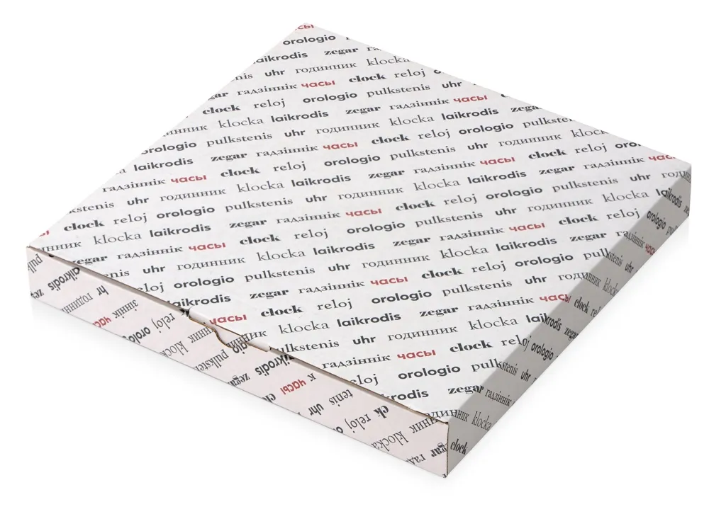Часы предназначены для вставки циферблата (диаметром 205 мм) с печатью по индивидуальному дизайну. Часы поставляются в разобранном виде. В состав комплекта входит: корпус с механизмом, крышка, стрелки и коробка. Часовая и минутная стрелки - черного цвета, секундная - красного цвета. Часы поставляются без батареек.