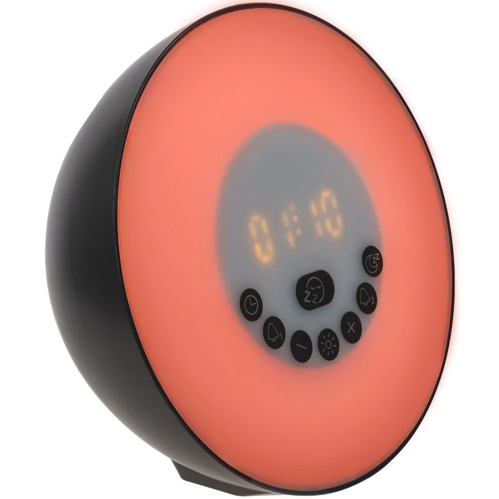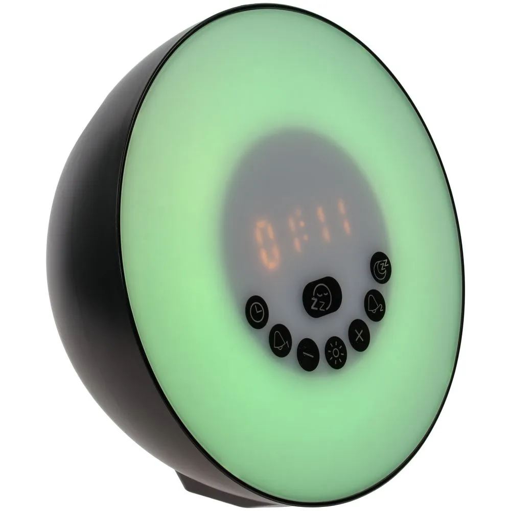 Лампа активируется за некоторое время до настроенного будильника и постепенно увеличивает яркость вплоть до момента, когда вы планируете окончательно проснуться. Эффект мягкого пробуждения можно дополнить звуками природы: шумом волн или пением птиц.