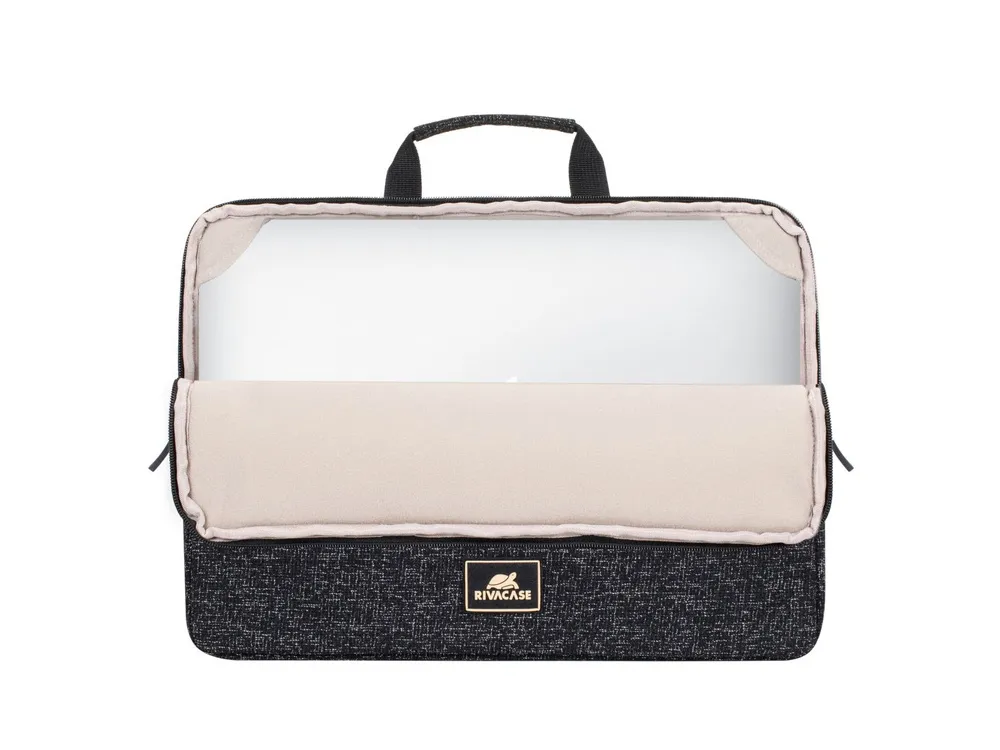 RIVACASE Чехол для ноутбука 15.6". Описание: • Серия универсальных чехлов для ноутбуков и планшетов. • Выполнены из высококачественной, водоотталкивающей ткани. • Мягкая плюшевая подкладка. • Специальные внутренние накладки по углам чехла надежно фиксируют гаджет и предотвращают случайное выпадение. • Внешний карман на молнии для аксессуаров, смартфона и документов. • Удобные ручки для транспортировки. • Внутренний размер 39 х 27 х 3,2 см.