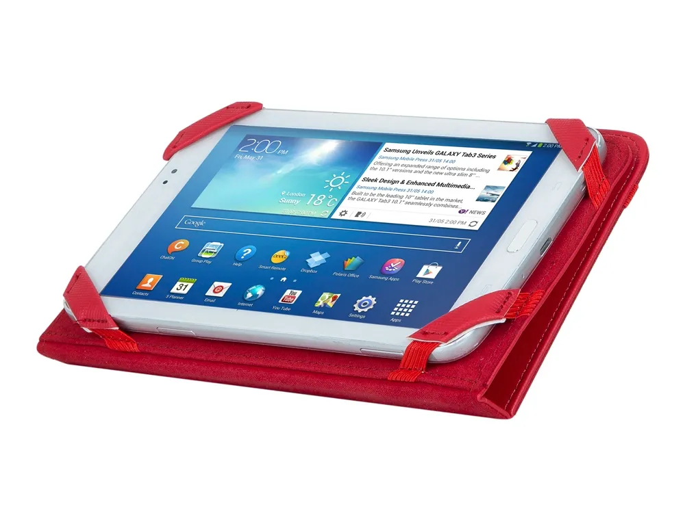 Чехол для планшетов до 7''. • Универсальный чехол для планшетов до 7" (Acer Iconia Talk B1-723 / Asus ZenPad C 7.0 Z170CG / Huawei MediaPad X2 / Lenovo Phab PB1-750M / Samsung Galaxy Tab 4 SM-T230). • Чехол выполнен с использованием различных материалов: - материал верха - высококачественный полиуретан; - внутренний материал контактирующий с тачскрином - микрофибра; • В качестве крепления используется высококачественная эластичная лента с противоскользящей накладкой. Легко устанавливать и вынимать планшет. • Планшет фиксируется в одном положении в режиме просмотра с помощью специальной подставки. Подставка, когда не используется, удерживается на внутренней стороне чехла с помощью магнита, не царапая корпус планшета. • Эластичная лента фиксирует чехол в закрытом состоянии. • Свободный доступ ко всем кнопкам, разъемам и динамикам. Мин. / Макс. внутренний размер (мм): от 90 х 170 / до 120 х 196