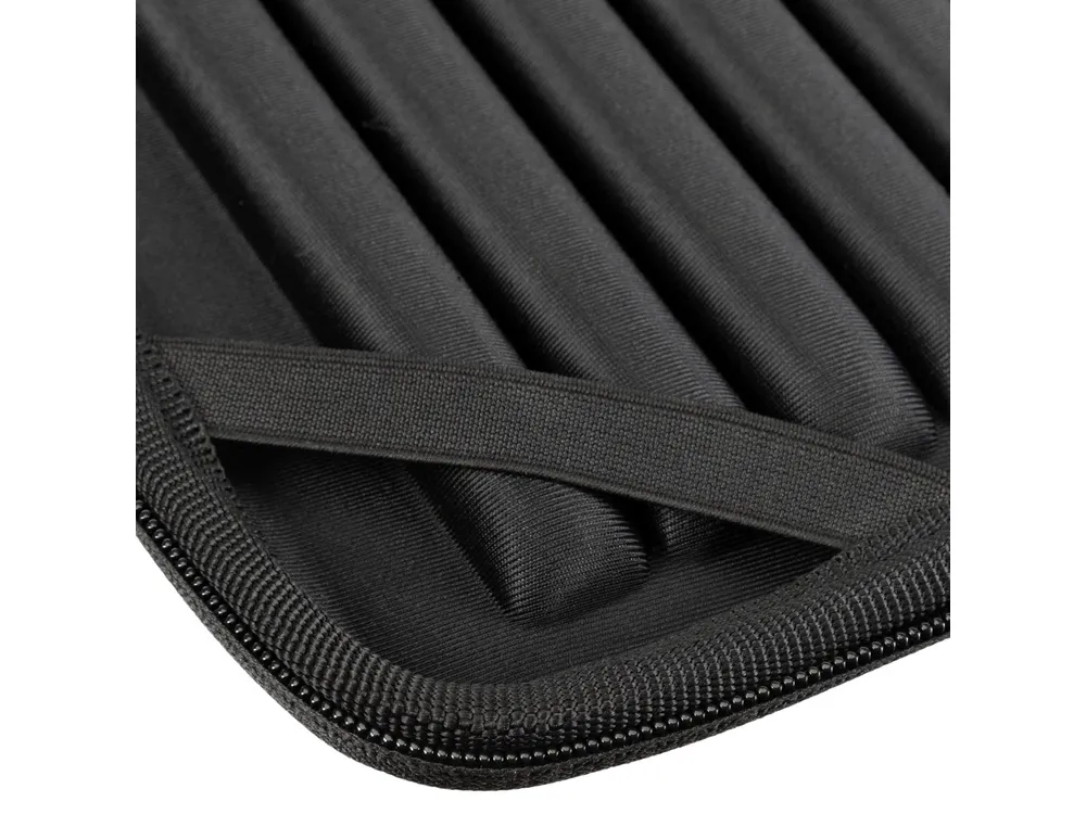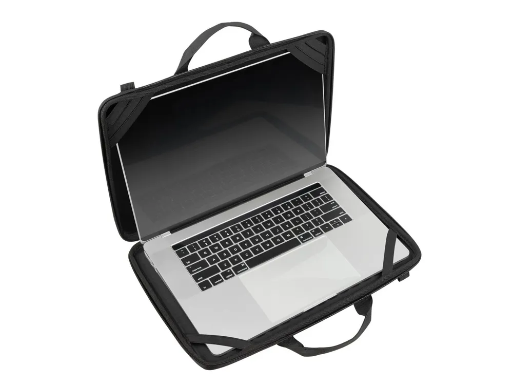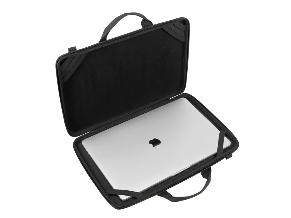 Жесткий чехол для ноутбуков. • Чехол создан из высококачественного, водоотталкивающего материала EVA, он надежно защищает от внешних воздействий, случайных ударов и царапин, а также от пыли и влаги. • Внутри дно оборудовано специальными накладками для защиты ноутбука, его рифленая форма обеспечивает хорошую вентиляцию и снижает нагрев устройства при работе в чехле. • В комплекте ремень для ношения чехла на плече. • Ноутбук надежно крепится внутри чехла специальными фиксирующими лентами по углам. • Двойная застежка "молния" для удобного доступа к устройству. Совместимость: Ноутбуки 15.6“