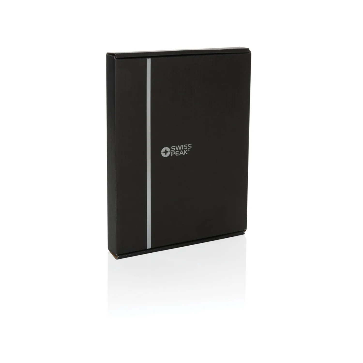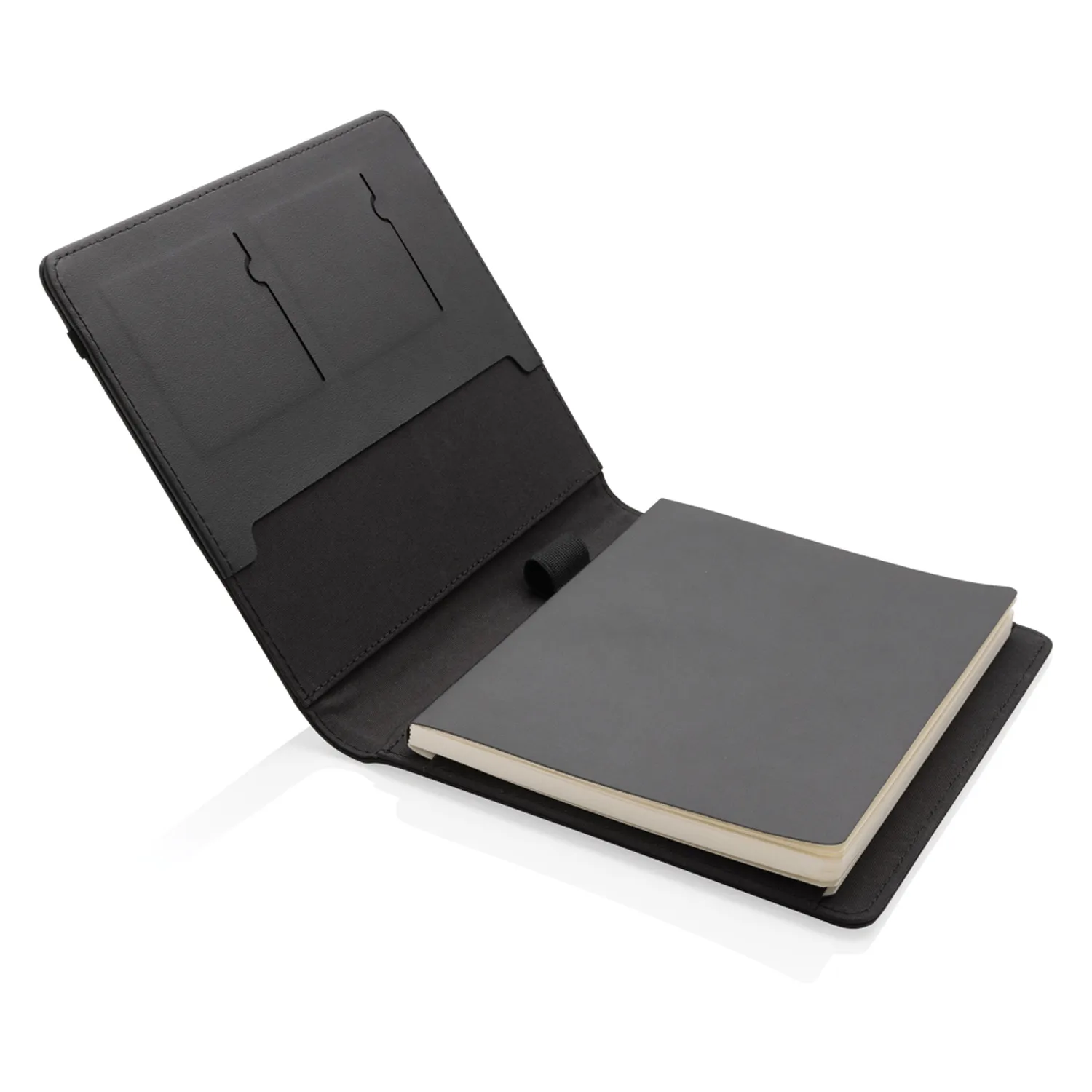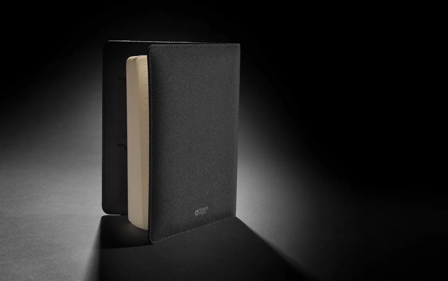 Органайзер с блокнотом Script — идеальный подарок для офисных работников и деловых партнеров. Стильный, экологичный и практичный, он выглядит строго и лаконично. Внутри находится блокнот формата А5, состоящий из 64 страниц линованной бумаги плотностью 80 г/м². Когда он закончится, его можно легко заменить на другой. Также в органайзере предусмотрены кармашки для банковских или визитных карт, держатель для ручки и карман формата А5. Сертифицировано AWARE™. Наличие индикаторных частиц AWARE™ подтверждает, что мы действительно используем переработанные материалы. 2% с продажи каждой вещи, отмеченной сертификатом AWARE™, мы перечисляем в поддержку всемирной организации Water.org.