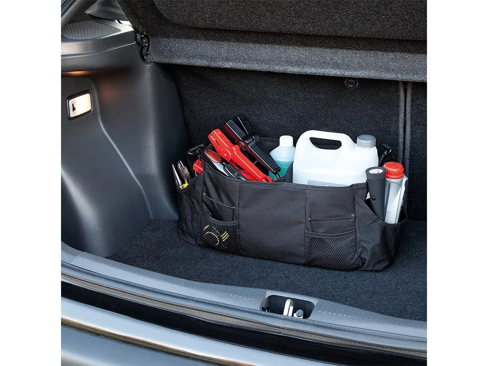 Сумка-органайзер «Рейгет» отлично подойдет для организации рабочего пространства в автомобиле. Можно регулировать размер внутренних отделений и также фиксировать сумку на сидениях или в багажнике. Органайзер имеет удобные внешние карманы.