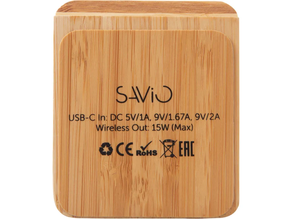 Знакомьтесь с инновационным беспроводным зарядным устройством на 15 Вт — созданным для комфорта, стиля и экологичного образа жизни. Его корпус сочетает натуральный бамбук и переработанный ABS-пластик, даря не только приятную на ощупь текстуру, но и выражая вашу заботу об окружающей среде. Уникальная конструкция с двумя центрами зарядки позволяет заряжать смартфон как в вертикальном, так и в горизонтальном положении — идеально для просмотра видео, видеозвонков или навигации во время зарядки. А встроенная белая подсветка с возможностью нанесения логотипа превращает зарядку в персонализированный аксессуар: ваш бренд или имя мягко светится, добавляя атмосферу уюта и премиальности. - Два режима зарядки — вертикально и горизонтально благодаря двум центрам индукции - Мощность 15 Вт — быстрая беспроводная зарядка для современных смартфонов - Экологичный премиум-дизайн — натуральный бамбук + переработанный ABS-пластик - Логотип с подсветкой — ваш бренд мягко светится, создавая запоминающийся визуальный эффект - Универсальный гаджет для дома и офиса — функциональный, стильный и экологичный акцент интерьера - Идеальный корпоративный подарок — технологично, персонализировано, с заботой о природе