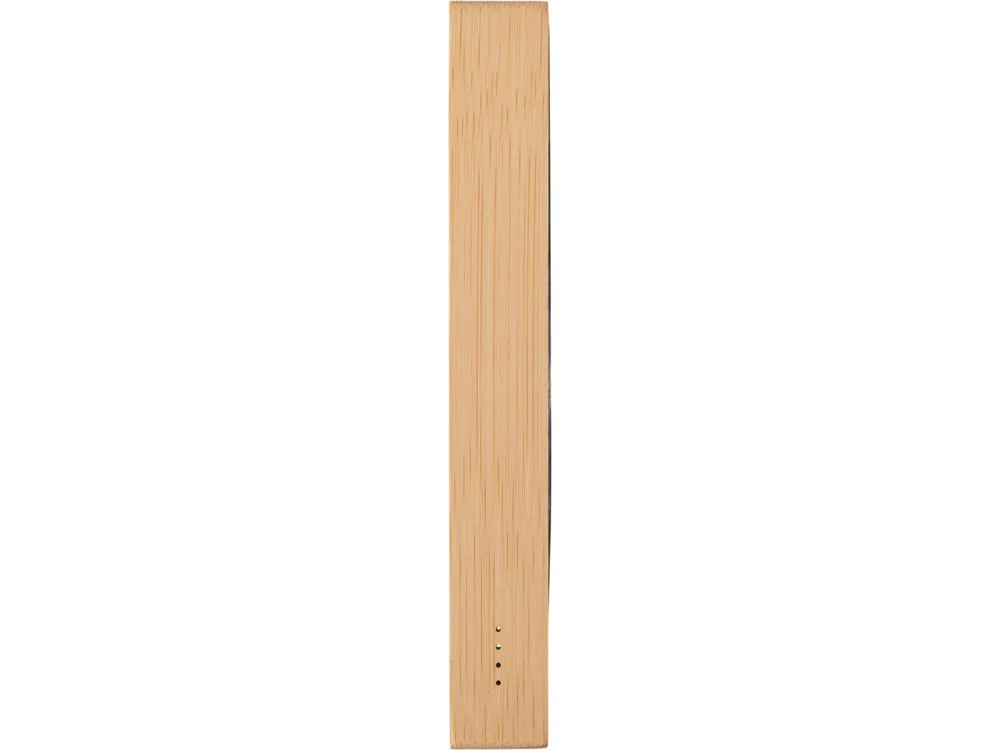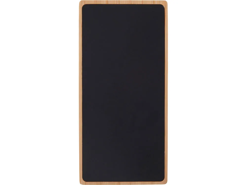 Внешний аккумулятор ёмкостью 10 000 мАч, созданный для тех, кто ценит стиль, функциональность и заботу о природе. Корпус устройства изготовлен из натурального бамбука и переработанного ABS-пластика — это не только придаёт ему уникальный эстетичный вид, но и снижает экологический след. С одной стороны — солнечная панель, позволяющая подзаряжать устройство от солнца, с другой — панель с возможностью нанесения светящегося логотипа компании или бренда. Идеальное решение для путешественников, офисных сотрудников и корпоративных подарков — технологично, стильно и ответственно. - Заряжайтесь от солнца — встроенная солнечная панель для автономного пополнения энергии - Экологичный дизайн — корпус из натурального бамбука и переработанного пластика - Яркий брендинг — логотип с подсветкой - Ёмкость 10 000 мАч — зарядит смартфон 2–3 раза за один цикл - Идеальный корпоративный подарок — стильный, полезный и запоминающийся