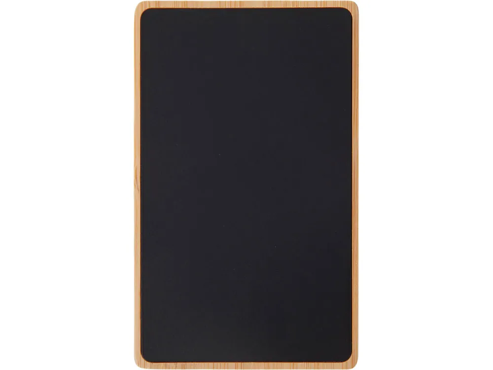 Компактный и стильный внешний аккумулятор ёмкостью 5 000 мАч — идеальный спутник для повседневных дел и коротких поездок. Его корпус сочетает в себе натуральный бамбук и переработанный ABS-пластик, что делает устройство не только более экологичным, но и визуально премиальным. Особый шарм ему придаёт встроенная панель с белой подсветкой с возможностью нанесения логотипа — ваш бренд или инициалы мягко засветятся в темноте, привлекая внимание и подчеркивая индивидуальность. Это не просто power bank — это экосознательный аксессуар, который заряжает ваши гаджеты и вдохновляет окружающих. - Компактный — 5 000 мАч в стильном корпусе для зарядки смартфона в дороге - Экологичный материал — натуральный бамбук + переработанный ABS-пластик - Логотип с подсветкой — ваш бренд мягко светится в темноте - Идеальный подарок — для клиентов, партнёров или сотрудников, кто ценит стиль и экологию