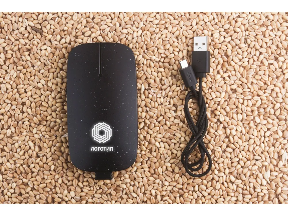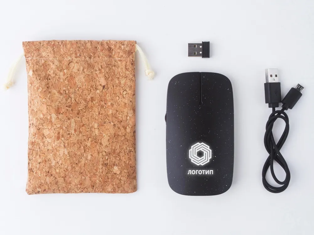 Ультратонкая беспроводная мышь без батареек в модном дизайне. Корпус изготовлен из биоразлагаемого пластика и на 30% из пшеничной соломы. Встроенный аккумулятор позволит вам не беспокоиться о том, что гаджет разрядится, мышкой можно пользоваться, даже в процессе зарядки. Время автономной работы -25 дней. - Подсветка логотипа вскрывается при помощи гравировки. - Пробковый чехол в комплекте. - Радиочастотная беспроводная мышь с нано-ресивером. - Частота соединения: 2.4G. - Встроенный литий-полимерный аккумулятор 700 mAh. - Радиус действия до 7 м. - DPI (количество точек на дюйм): 1200. - Совместимость: Win & Mac. *крапинки на корпусе мышки могут отличаться от представленных на сайте.