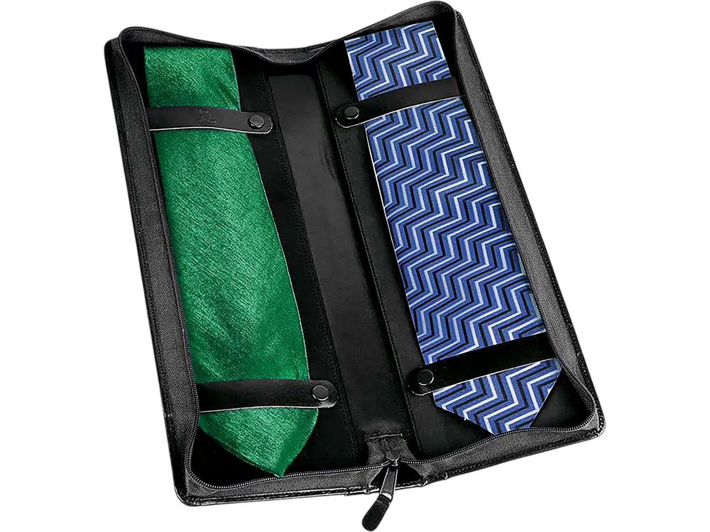 Отличный чехол для галстуков подойдет в качестве подарка мужчинам. Чехол выполнен из качественной натуральной кожи. Чехол рассчитан на хранение двух галстуков. Это практичный аксессуар станет незаменимым помощником в командировке.