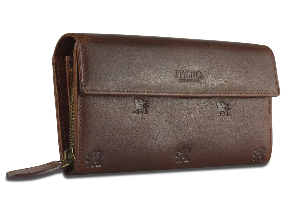 Коллекция «DON LEON» - квинтэссенция инноваций бренда MANO 1919®. Все изделия коллекции изготовлены вручную из высококачественной натуральной кожи буйвола в роскошном коричневом цвете. Элегантное тиснение в виде льва и изящный логотип подчеркивают индивидуальный стиль коллекции. MANO 1919 ®. Кошелек M191920541 Размеры: 10 см (В) x 19 см (Ш) x 3 см (Г) Материал: натуральная кожа буйвола Кошелек изготовлен вручную из натуральной кожи буйвола, обеспечивает безопасное хранение купюр, кредитных карт и монет. Особенности: • 12 отделений для кредитных карт • 2 основных отделения для купюр позволяют хранить банкноты в развернутом виде • Дополнительное отделение • Отделение для монет на молнии • Первоклассная кожа, качественная подкладка и надежные застежки на кнопке и молнии гарантируют долговечность изделия. Кошелек M191920541 станет незаменимым компаньоном в повседневной жизни.