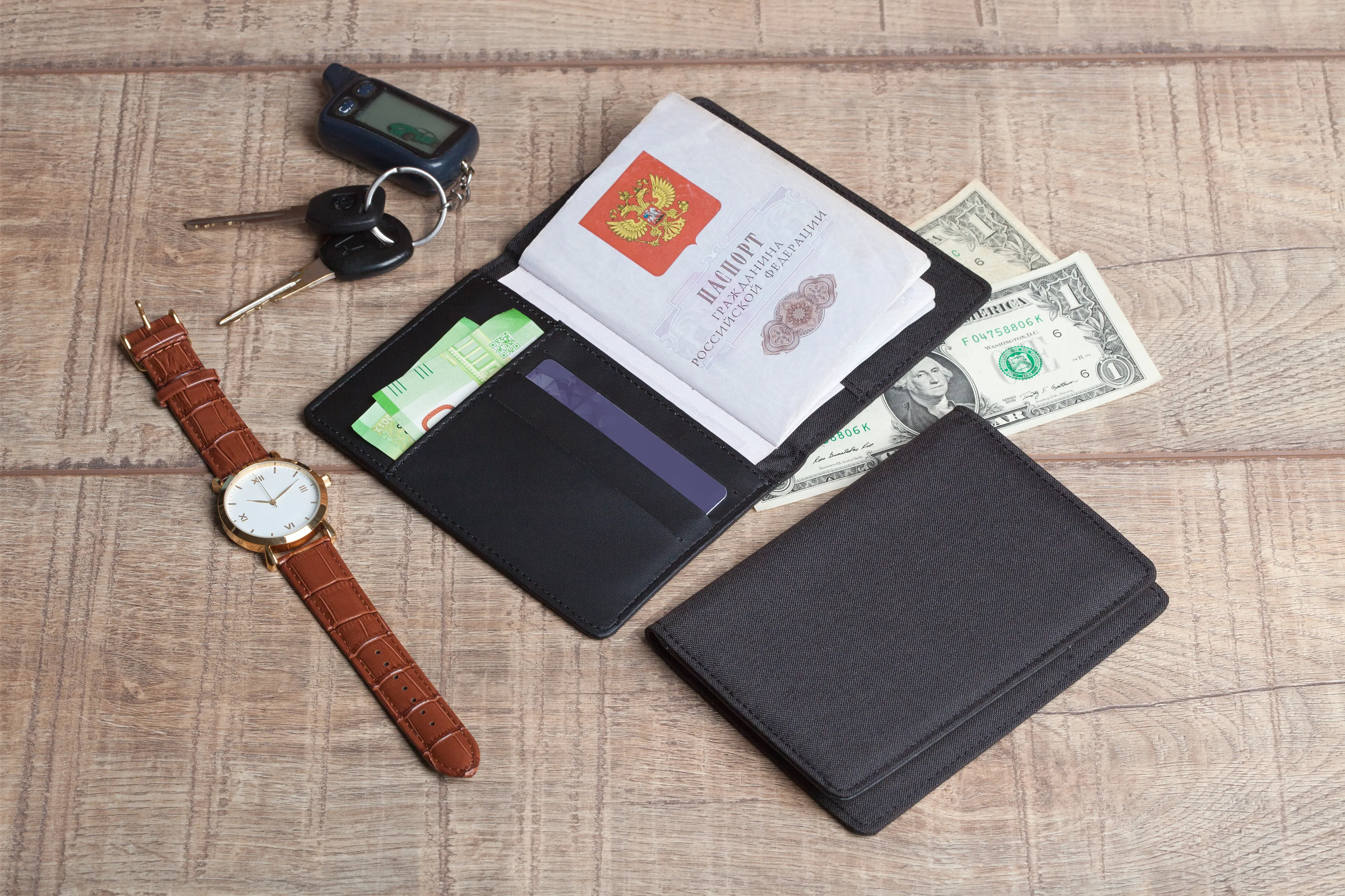 Обложка для паспорта с RFID — защитой и отделом для банковских карт — отличный аксессуар, который защитит документы от удаленного считывания данных. Прекрасный вариант подарка для путешественника.