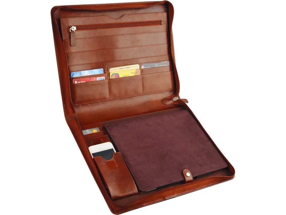Папка уникальна. Мало того, что она из очень хорошей кожи, мало того, что в ней предусмотрено много отделений самых разных назначений, в ней еще есть очень удобное место для iPad 2 / 4 и iPhone. А это ее делает просто бесценной.