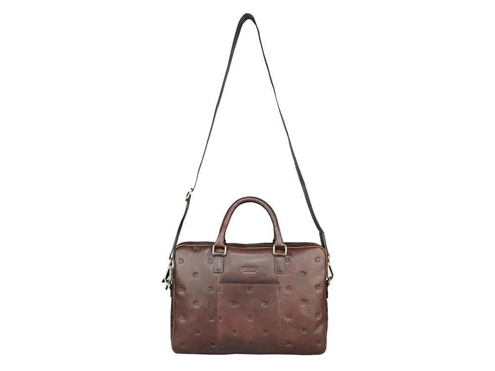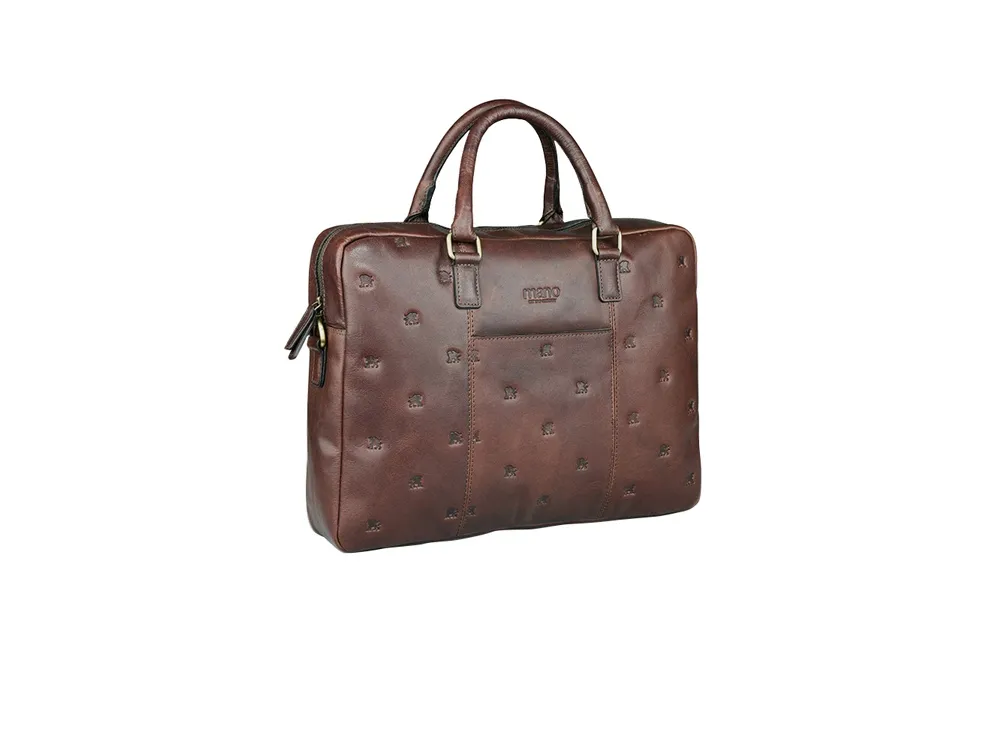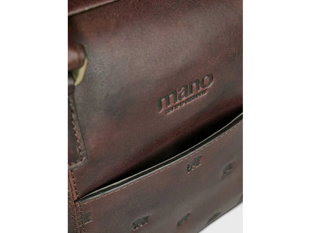 Коллекция «DON LEON» - квинтэссенция инноваций бренда MANO 1919®. Все изделия коллекции изготовлены вручную из высококачественной натуральной кожи буйвола в роскошном коричневом цвете. Элегантное тиснение в виде льва и изящный логотип подчеркивают индивидуальный стиль коллекции. MANO 1919 ®. Бизнес-сумка M191920841 Эстетика и практичность: бизнес-сумка M191920841 отличается элегантным стилем и удобной организацией внутреннего пространства. Вместительное основное отделение для документов и ноутбука и дополнительные карманы обеспечивают идеальное хранение необходимых вещей. Бизнес-сумка станет незаменимым компаньоном для мужчин, которые ценят удобство и комфорт. Благодаря классической форме и роскошному коричневому цвету бизнес-сумка является привлекательным спутником в повседневной жизни. Размеры: 29,5 см (В) x 41 см (Ш) x 8,5 см (Г) Материал: натуральная кожа буйвола Особенности: • Основное отделение на молнии с внутренним карманом на молнии • Дополнительное отделение • Мягкое отделение для ноутбука диагональю 13″ • Карман для мобильного телефона и 2 отделения для ручек • Задний карман на молнии • Съемный регулируемый плечевой ремень до 145 см • Ремень для крепления к телескопической ручке чемодана • Первоклассная кожа, качественная подкладка и надежные застежки на молнии гарантируют долговечность изделия