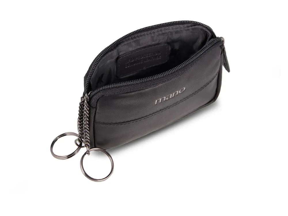 Ключница "Don Romeo" RFID Немецкий бренд mano, основанный в Германии в 1919 году, на протяжении 100 лет является одним из ведущих экспертов в производстве кожаных изделий ручной работы. Безусловная любовь к мастерству и внимание к деталям проявляется в каждом дизайне. «Разработано в Германии» - дизайны сумок, кошельков и других кожаных аксессуаров разработаны первоклассными немецкими специалистами с целью создания долговечных компаньонов для вашей повседневной жизни. Каждое творение бренда – изделие из натуральной кожи высочайшего качества, созданное вручную лучшими мастерами. Строгий и тщательный отбор материалов, высочайшее мастерство производства, внимание к деталям гарантируют превосходное качество продукции. Особенности: • Отделение на молнии • 2 кольца для ключей на цепочках • Дополнительный карман на молнии Материал: натуральная воловья кожа Размеры: 11 х 2 х 7 см Вес: 0,034 кг Ключница M191950001 - незаменимый компаньон в повседневной жизни, который обеспечивает безопасное хранение и переноску ключей. Благодаря своим размерам ключница прекрасно уместится в любой карман или сумку и будет всегда под рукой. Первоклассная кожа, качественная подкладка и надежная застежка на молнии гарантируют долговечность изделия. Особое внимание уделено защите от радиочастотной идентификации RFID. Ключница оснащена специальным защитным слоем из фольги, который предотвращает незаконное сканирование вашей личной информации и препятствует списанию денежных средств с банковских карт.