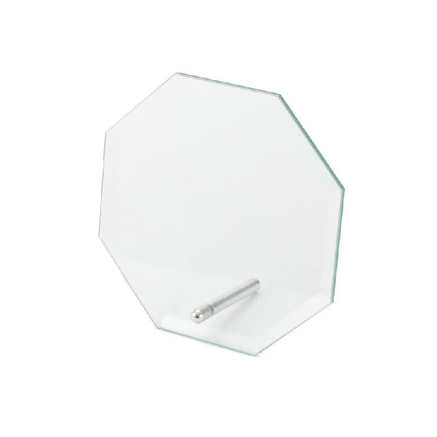 Награда в форме восьмиугольника из толстого стекла. Поставляется в подарочном футляре.