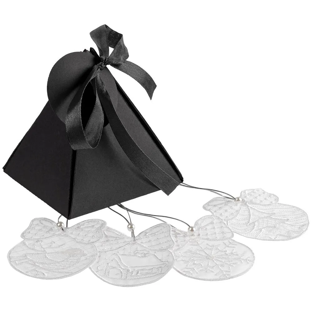Набор состоит из 4 подвесок зимней тематики, упакованных в картонную подарочную упаковку с лентой.