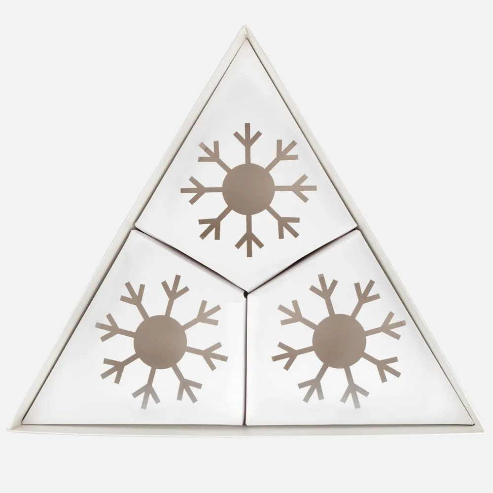 А еще Finery Trio — это маленькое произведение искусства, созданное с вниманием к деталям: шары диаметром 10 см бережно уложены в индивидуальные ложементы с изящным вырезом в форме снежинки, а стильная коробка придает подарку особую торжественность. Нестандартная треугольная форма упаковки подчеркивает оригинальность композиции и делает презент по‑настоящему запоминающимся.