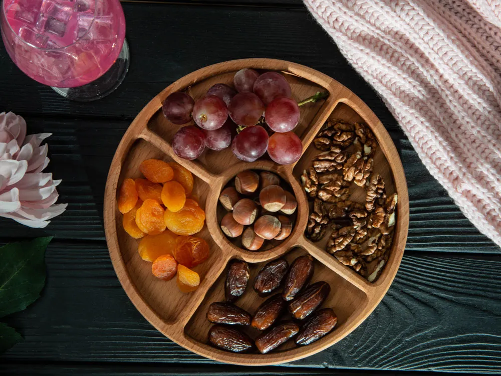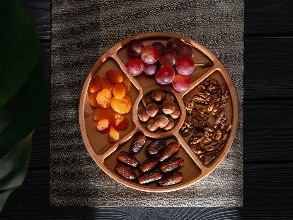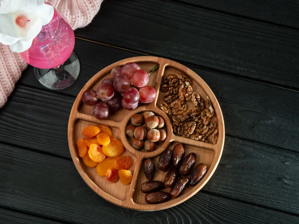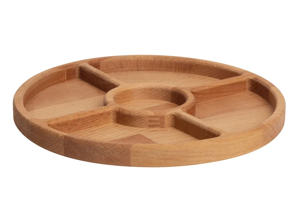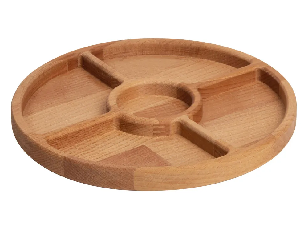 Менажница из натурального бука предназначена для красивой подачи закусок. В центр можно установить соусницу (не входит в комплект). Советуем регулярно смазывать менажницу пищевым маслом, чтобы изделие дольше радовало вас. - натуральный бук - интересный дизайн - вариант для подачи нескольких видов закусок - можно использовать для сервировки закусок Рекомендации по использованию: - не рекомендуется использовать в посудомоечной машине, микроволновой печи, замачивать в раковине с водой - не использовать агрессивные моющие средства - использовать мягкую губку для очищения - вытирать насухо после мытья - транспортировать изделия при температурном режиме от +5°C до +20°C - хранить в помещениях с влажностью до 65-70% - не подвергать прямым солнечным лучам - не подвергать нагреву - хранить при температуре от +5°C до +20°C - не оставлять на морозе от -10°C на более чем 6 часов