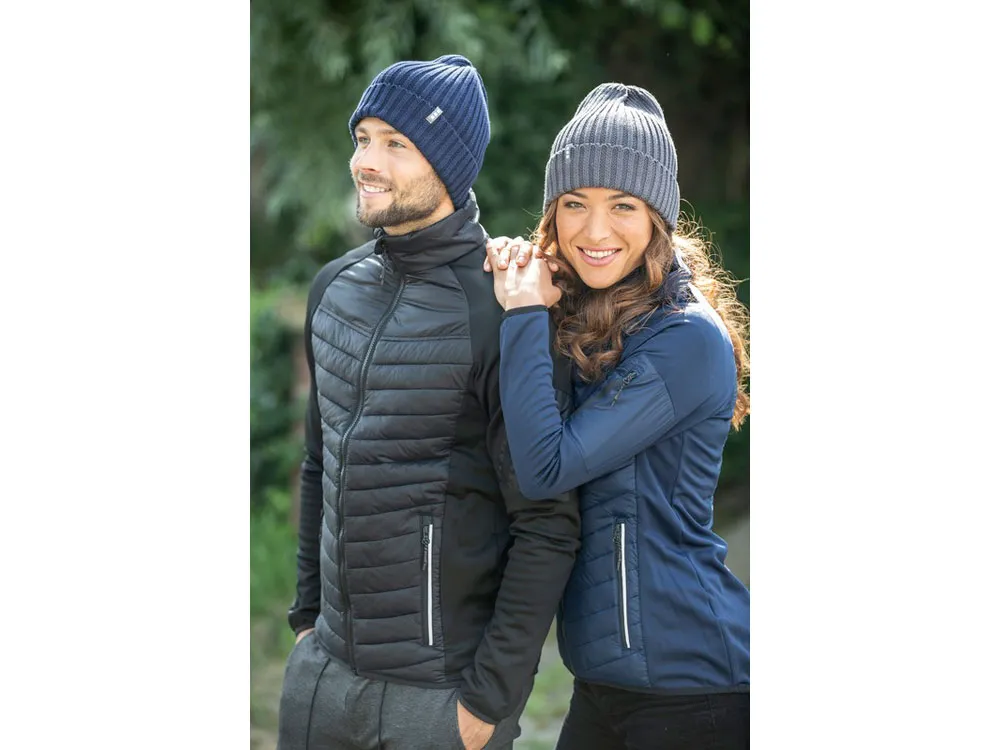 Экологически безопасный рекламный головной убор. Однослойная шапка с двойным отворотом связана рибом 2х2 7 класса из 100% органического хлопка. Фирменная этикетка в виде петли.