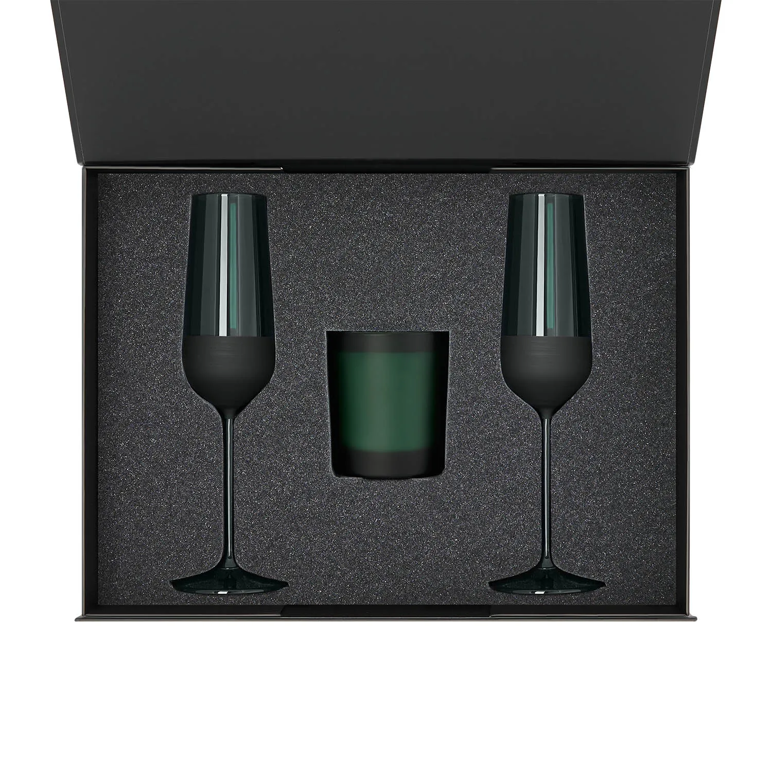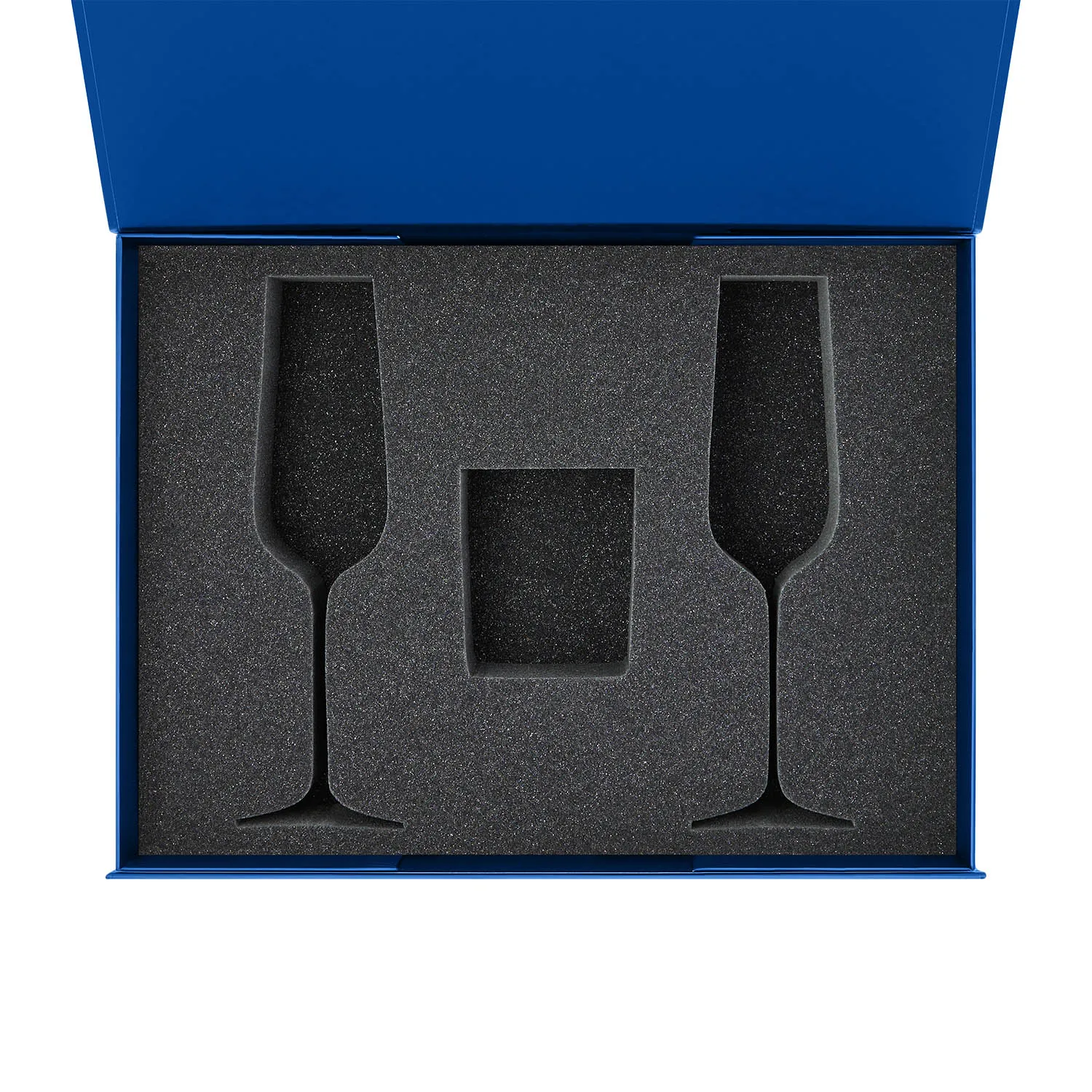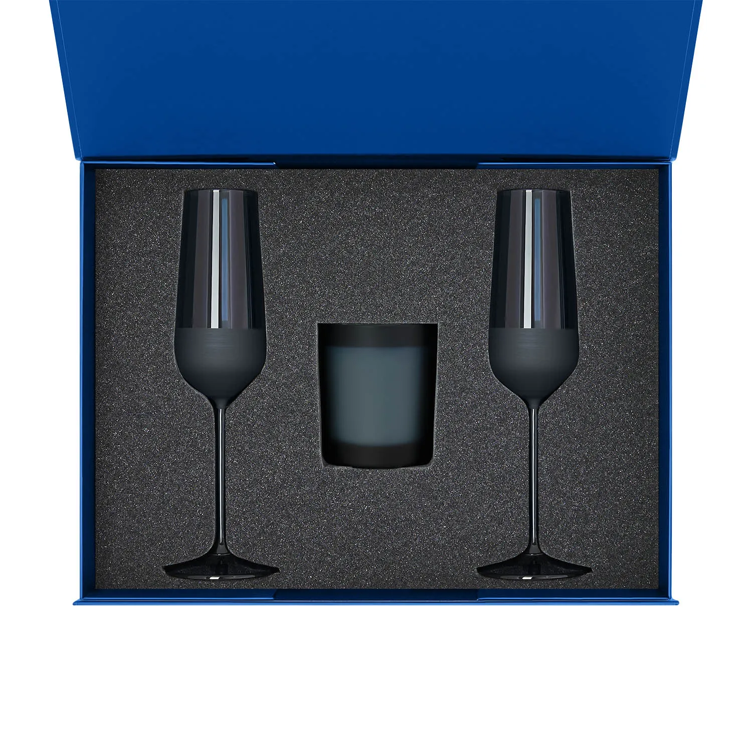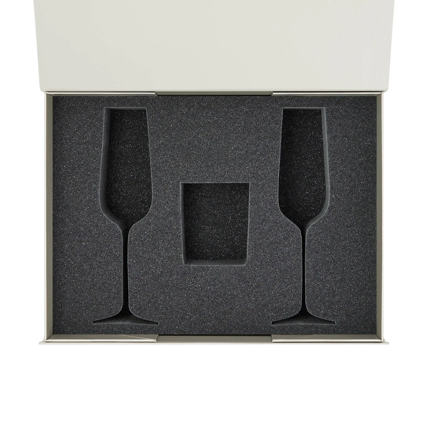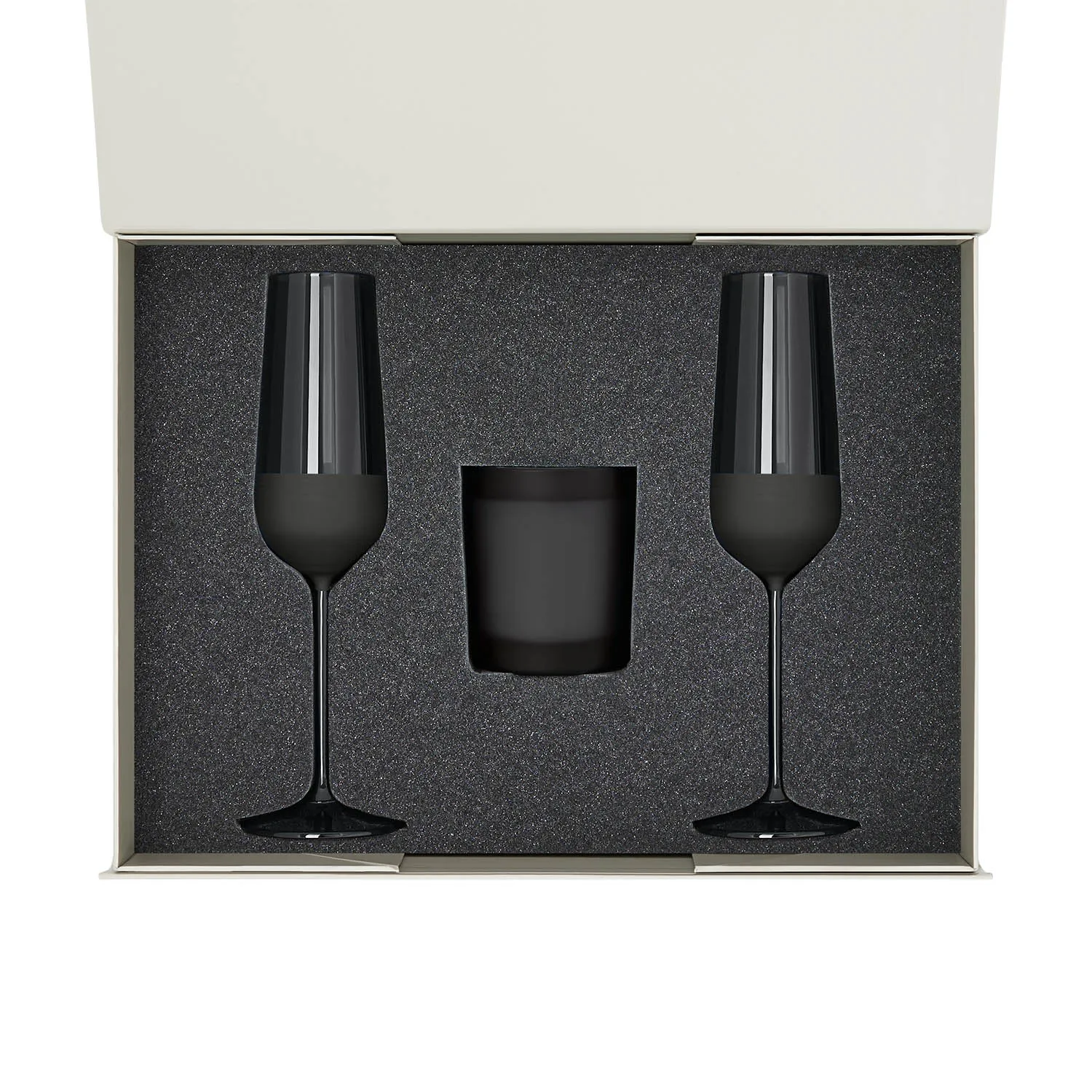 Идеальное решение для надежной и стильной упаковки двух бокалов для шампанского и свечи.