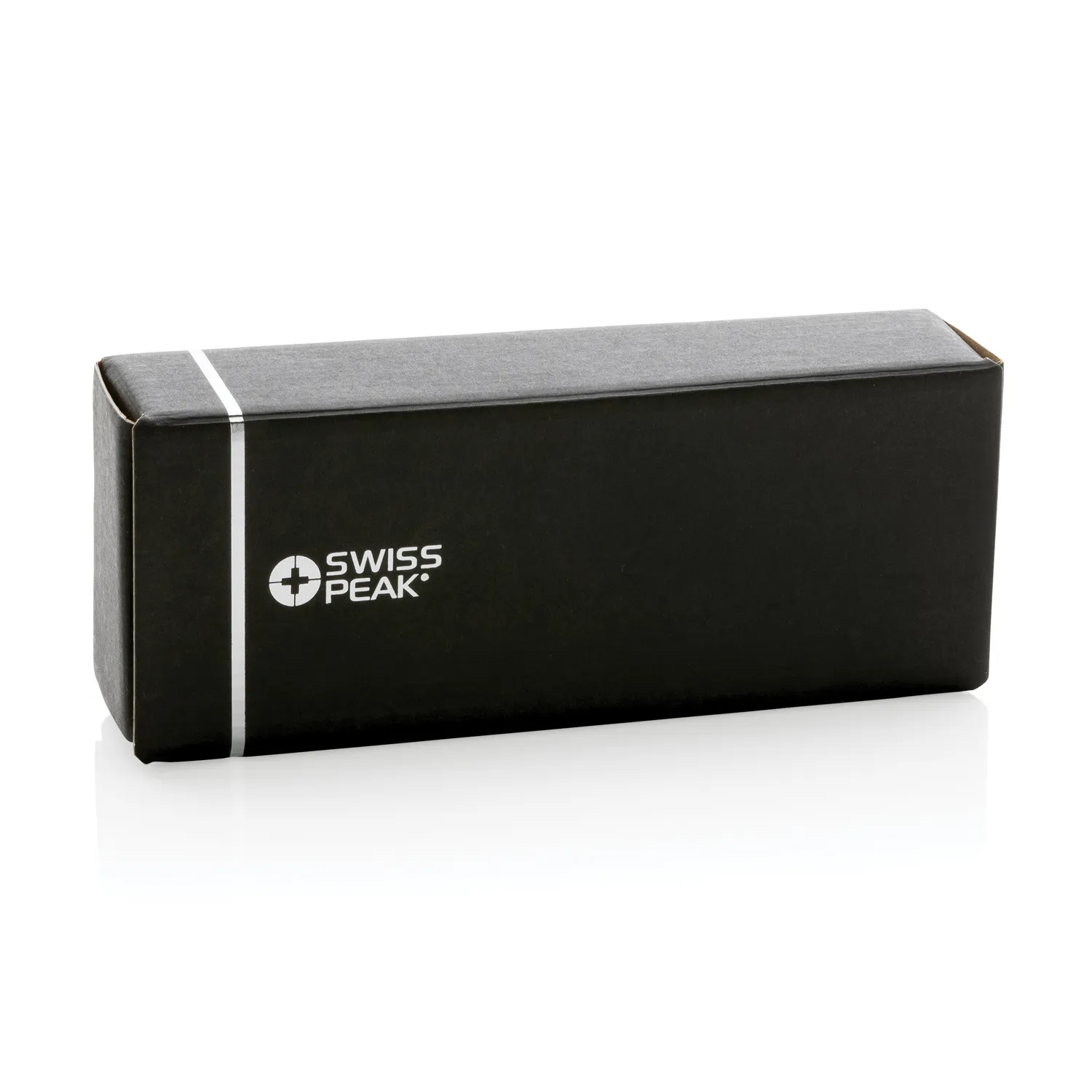 Поляризационные солнцезащитные очки Swiss Peak с оправой из переработанного поликарбоната, сертифицированной RCS, и алюминиевыми дужками. Содержание вторичного материала: 37% от общего веса изделия. Сертификация RCS обеспечивает полный контроль цепочки поставок переработанных материалов. В комплекте идет чехол для хранения из rPET, сертифицированного GRS. Благодаря антибликовым линзам очки идеальны для вождения автомобиля или занятий спортом в солнечный день. Соответствуют стандартам EN ISO 12312-1, UV 400 и CAT 3. Поставляются в фирменной коробке FSC®.