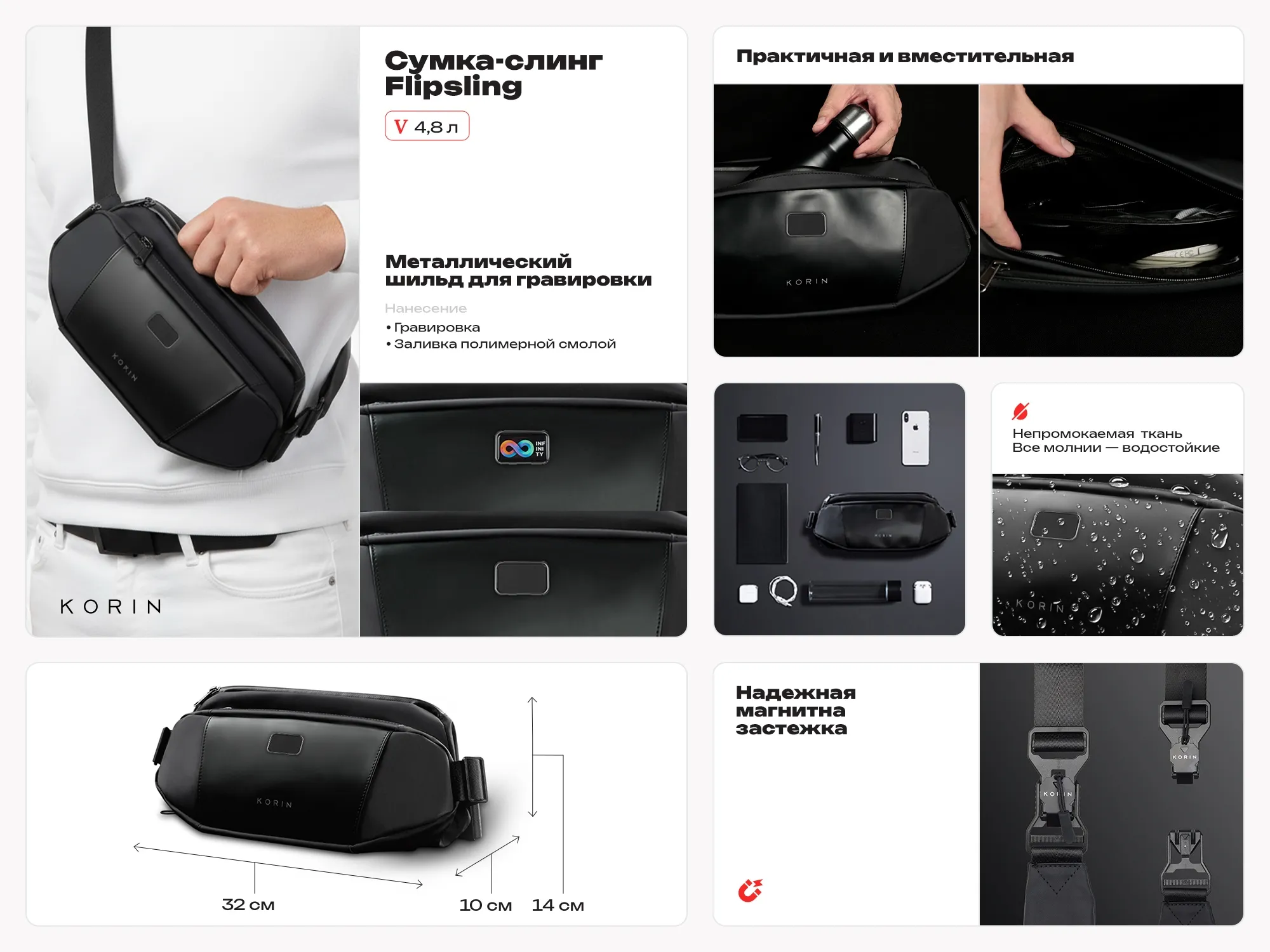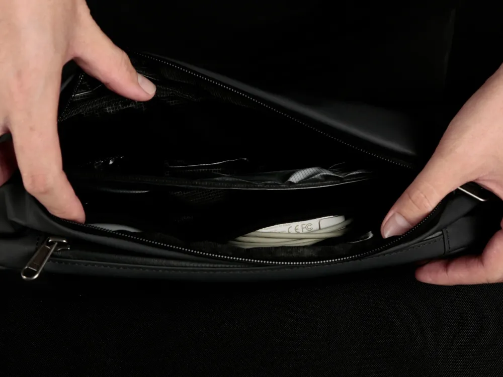 Сумка-слинг- модный и стильный аксессуар. Выполнена из водостойкого материала с водонепроницаемыми молниями. Отделка из экокожи. Расширяющийся водостойкий карман для хранения бутылки или зонта. Потайной карман сзади на магните. Лямка из нескользящего материала 130 см на магнитной застежке. Поставляется в коробке с ручкой.