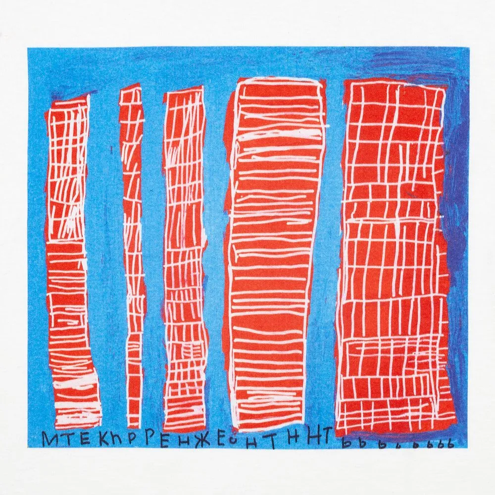 Картина «Небоскребы» принадлежит направлению ар брют — творчеству в его наиболее чистом проявлении. Это спонтанный выплеск эмоций из самых глубин сознания, запечатленный на бумаге. Художники этого направления, как правило, самоучки: они не пытаются найти себя в искусстве, а открывают искусство в себе и в окружающем мире, каким бы большим или маленьким он ни был.