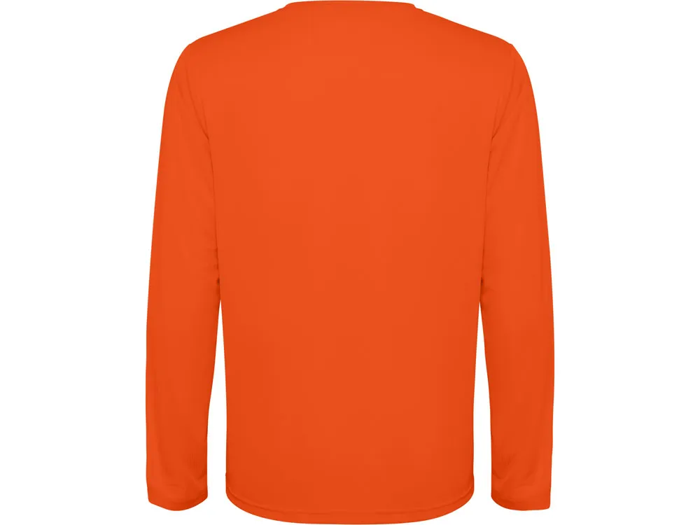 Детский лонгслив из технологичного полотна. Отстрочки в тон. Спинка с удлинением. Боковые швы со смещением вперед.