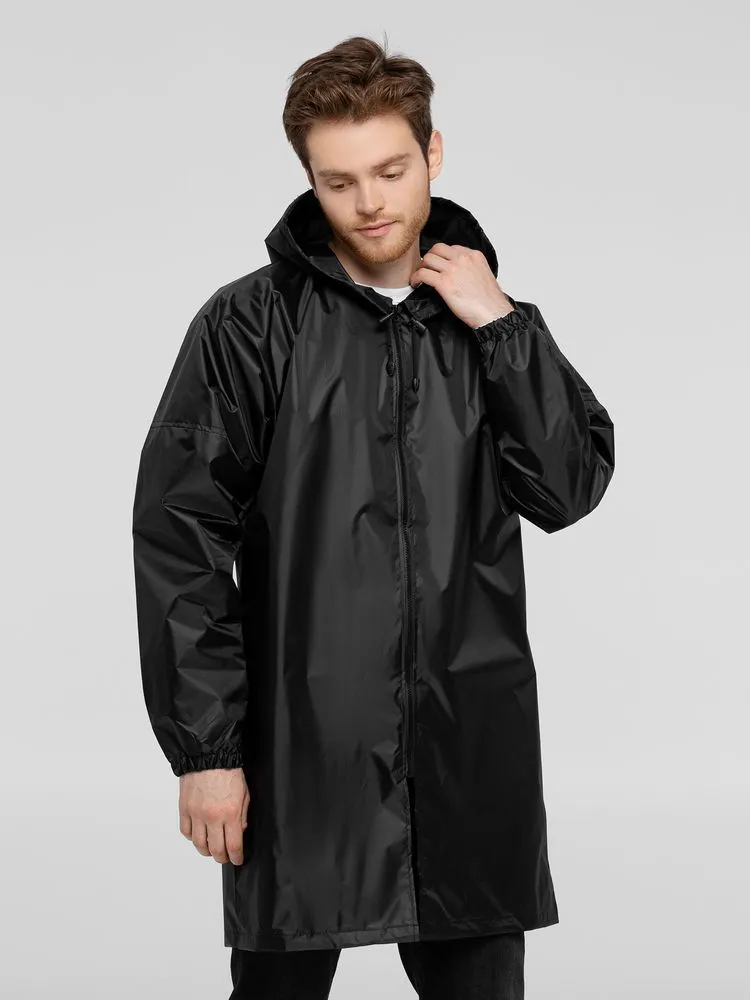 Плащ-дождевик из ткани таффета на молнии с капюшоном. Складывается в мешочек — удобно брать с собой.