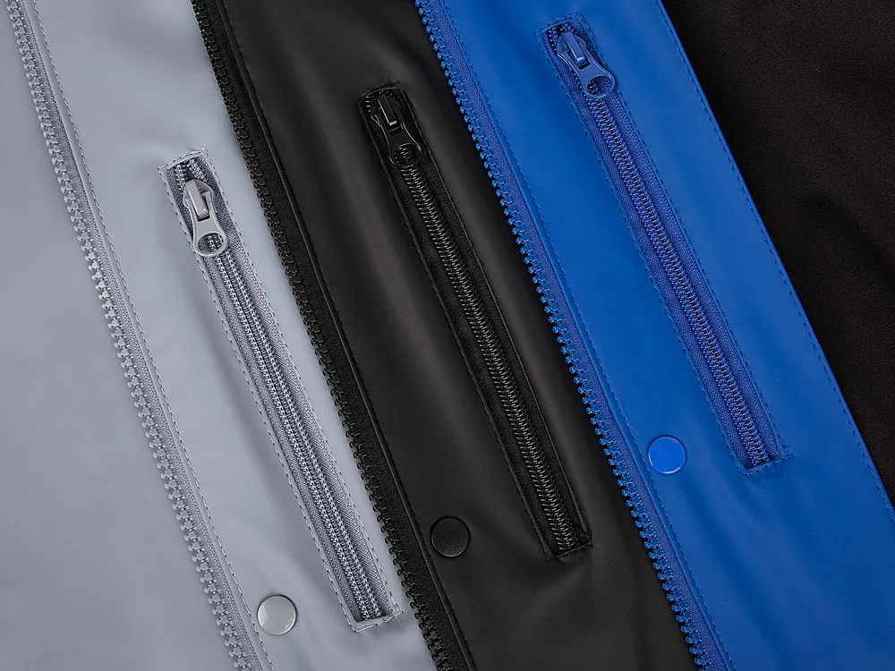 - Абсолютно водостойкие швы благодаря методу спаивания деталей кроя позволяют использовать дождевик даже в шторм