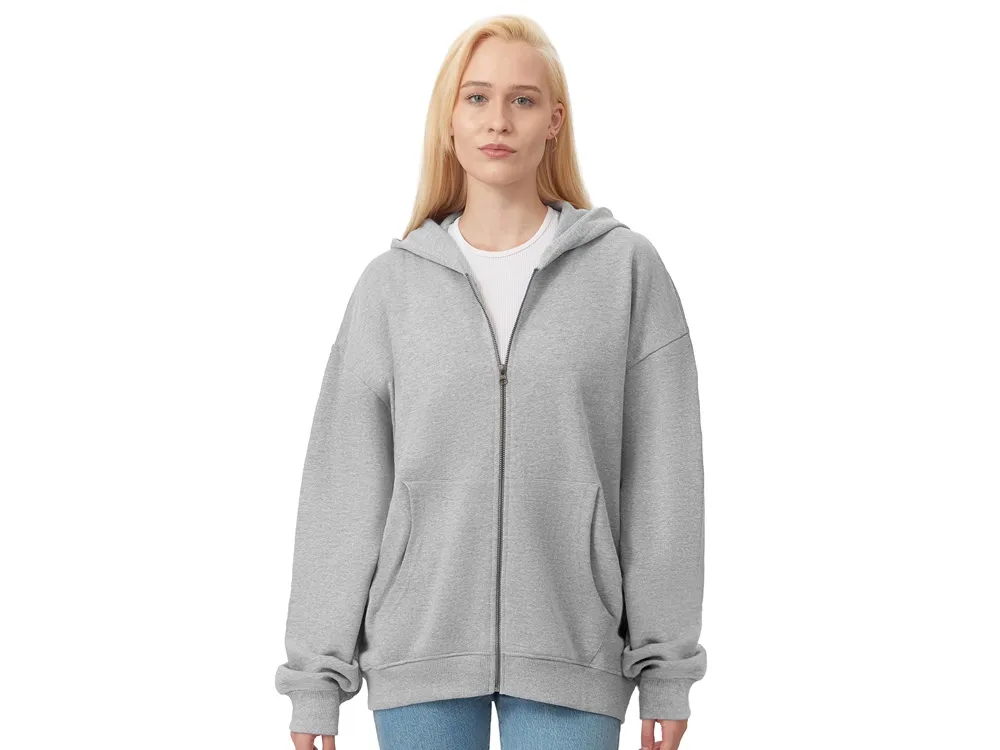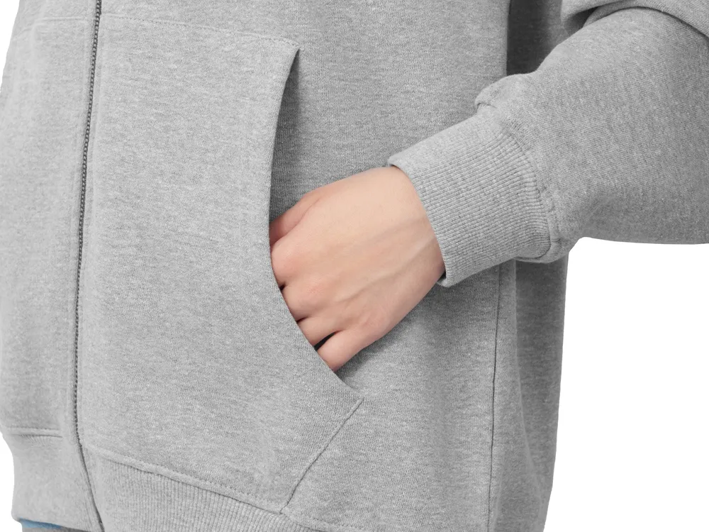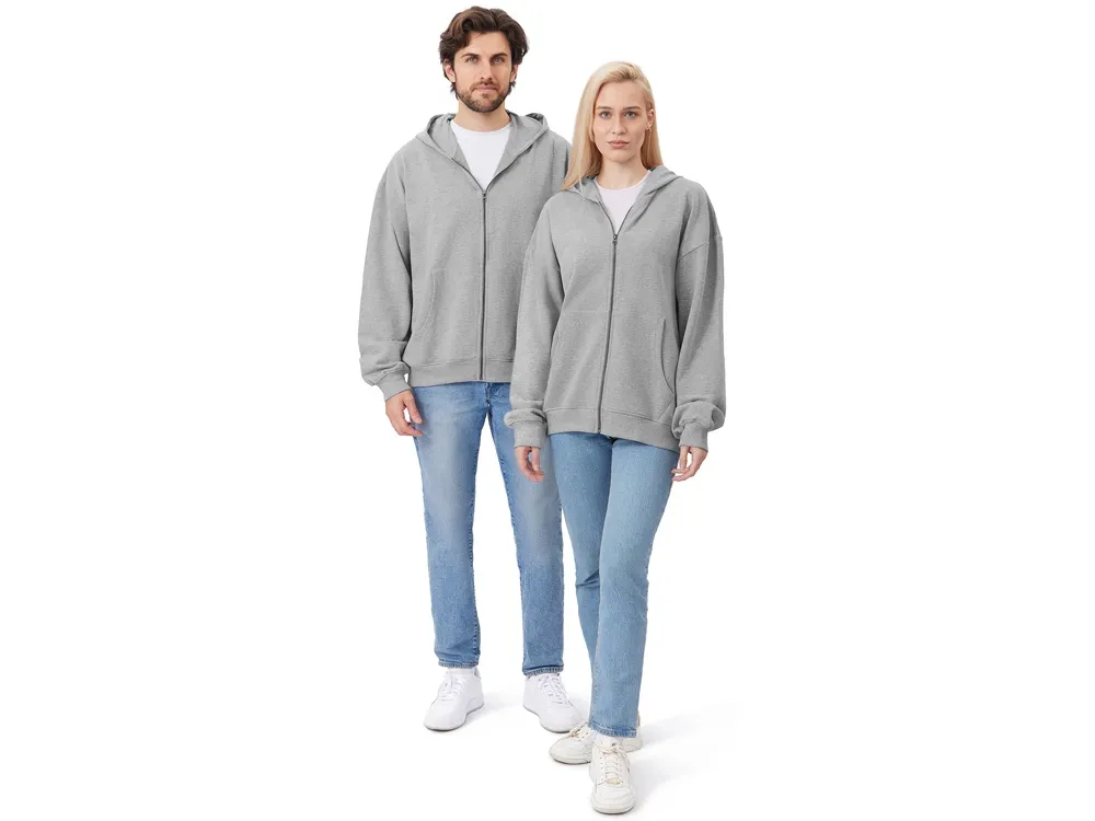 Толстовка на молнии с капюшоном. Риб 2х2 по манжетам и низу изделия. - удобный капюшон на подкладке из основного материала - посадка оверсайз - вместительный карман кенгуру - внутри на спинке кокетка - дополнительное место для нанесения лого клиента
