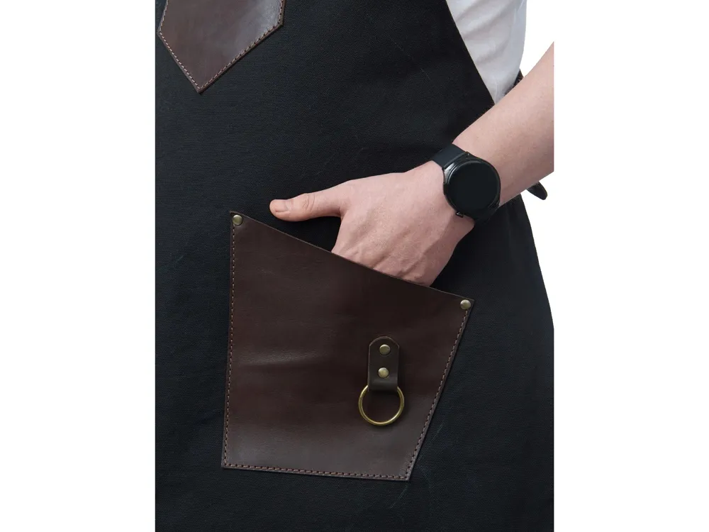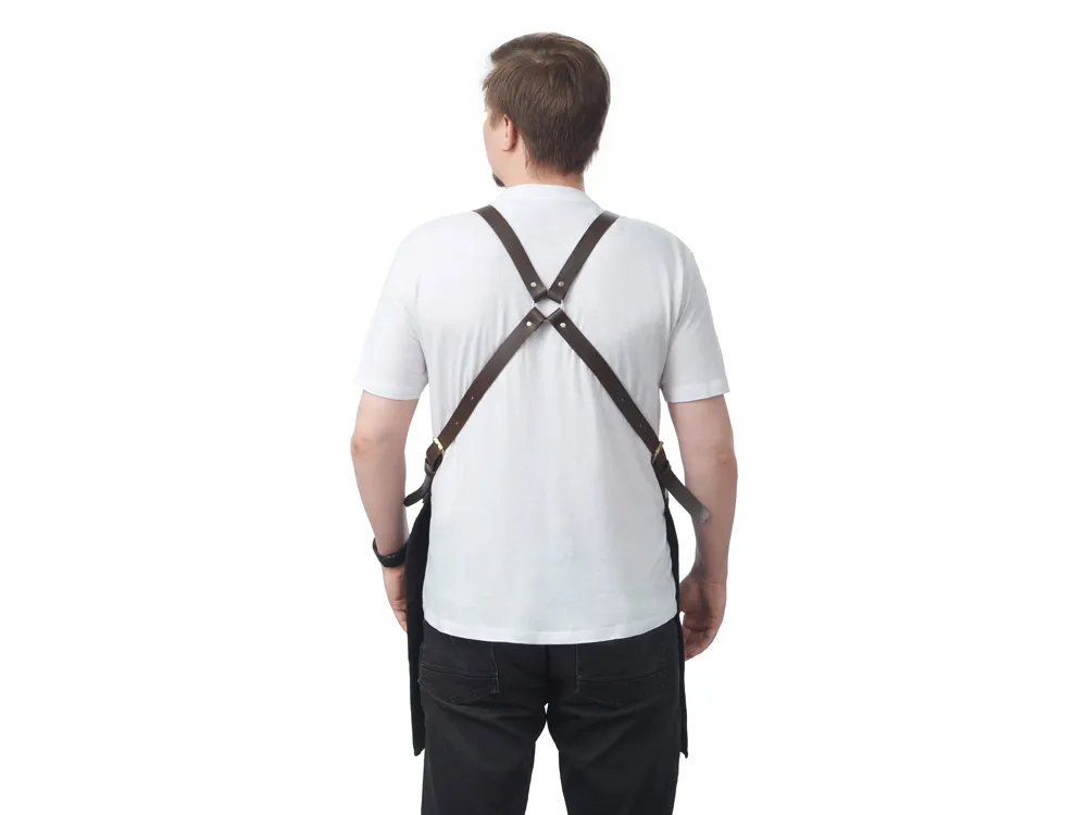Фартук из канваса с ремнями из натуральной кожи – ваш надежный помощник на кухне и в творчестве! Ищете идеальный фартук, который объединит стиль, практичность и долговечность? Представляем вам наш фартук из смесового канваса с ремнями и карманами из натуральной кожи КРС. Это сочетание материалов обеспечивает не только элегантный внешний вид, но и надежную защиту от загрязнений. Преимущества: - Высококачественный материал: Канвас плотностью 450 гр/м² делает фартук прочным и долговечным. Хлопок с водоотталкивающей пропиткой защищает от пятен и легко чистится, что особенно важно на кухне. - Дизайнерская отделка: Белые полосы на ткани — это не случайность, а продуманное дизайнерское решение, создающее эффект легкой потертости. Этот элемент придаёт изделию характер и подчёркивает его стильный, винтажный облик. - Натуральная кожа: Ремни из натуральной кожи КРС обеспечивают надежную фиксацию и комфорт в носке. Они не только стильные, но и износостойкие, что гарантирует долгий срок службы. - Эстетика и стиль: Черный цвет фартука в сочетании с коричневыми кожаными элементами создает стильный и современный образ. Этот фартук подойдет как для профессиональной, так и для домашней кухни, а также для барбекю и других активных хобби. - Функциональность: Удобные карманы позволят хранить необходимые инструменты под рукой, а надежная фурнитура из сплава металлов обеспечивает прочность и долговечность конструкции. - Этот фартук – идеальный выбор для кулинаров, художников, садоводов или мастеров по дереву. Он станет отличным подарком для друзей и близких, которые ценят качество и стиль. Не упустите шанс добавить в свою жизнь функциональность и стиль! Закажите фартук из канваса уже сегодня!