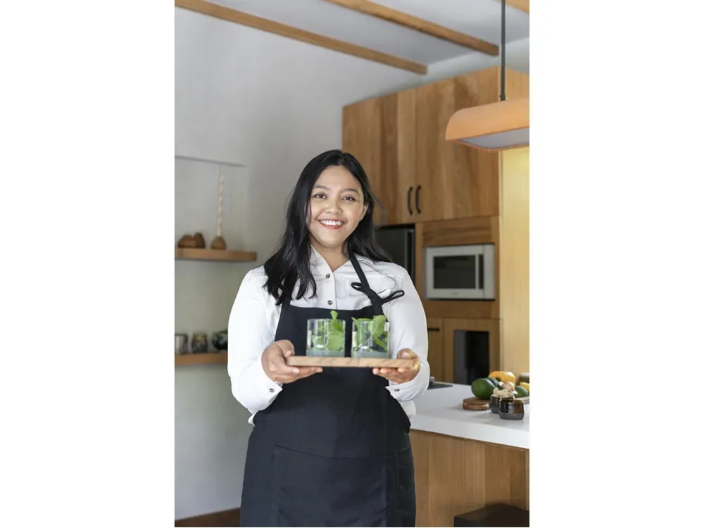 Фартук изготовлен из 100% переработанных материалов, полученных от швейной промышленности Бангладеш. Изготовленный на традиционном ручном станке, он поддерживает женское предпринимательство, что делает его идеальным социальным подарком, способствующим как устойчивому развитию, так и социальной ответственности. Состав: 70% переработанного хлопка, 25% переработанного полиэстера, 5% других переработанных волокон.