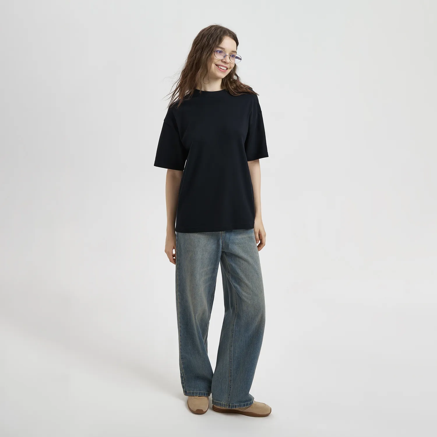 Каждый из нас ищет ту самую футболку: комфортную, универсальную, эстетичную. AURA создана как раз для этого — быть частью вашего повседневного образа и при этом легко адаптироваться к атмосфере деловой встречи или вечернего города.—