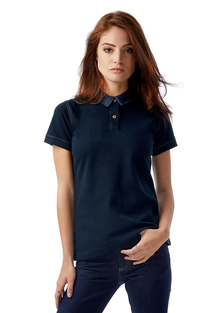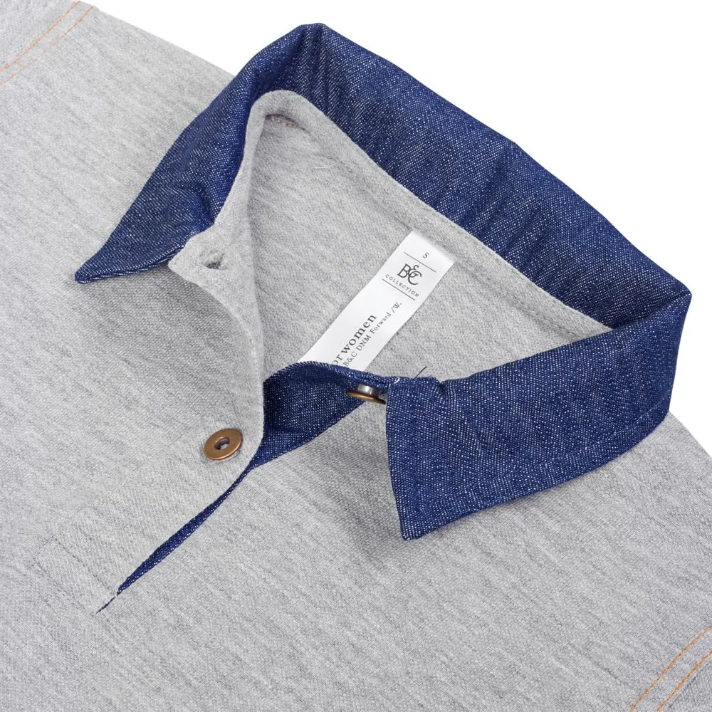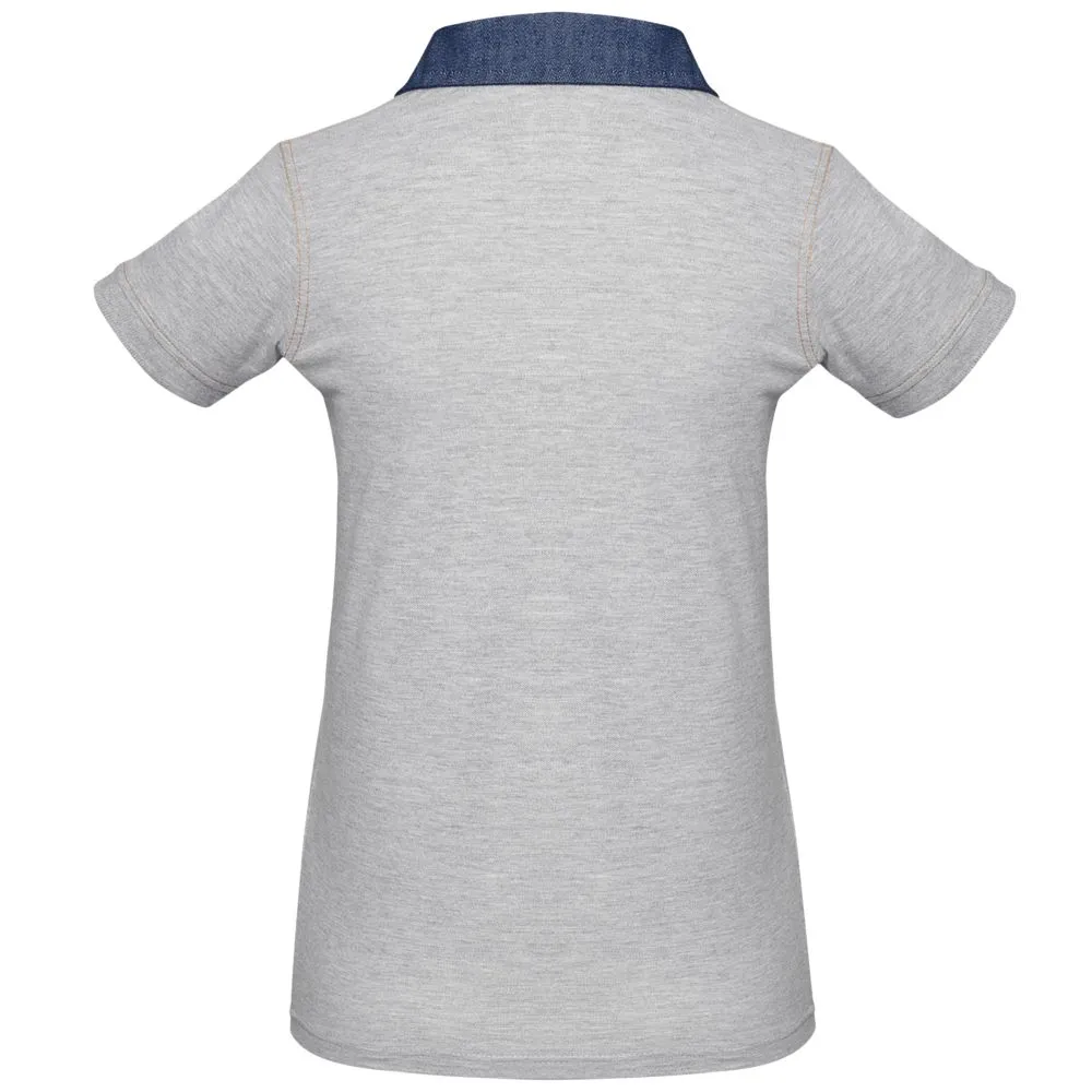 Рубашка поло с джинсовым воротником и контрастной отстрочкой.