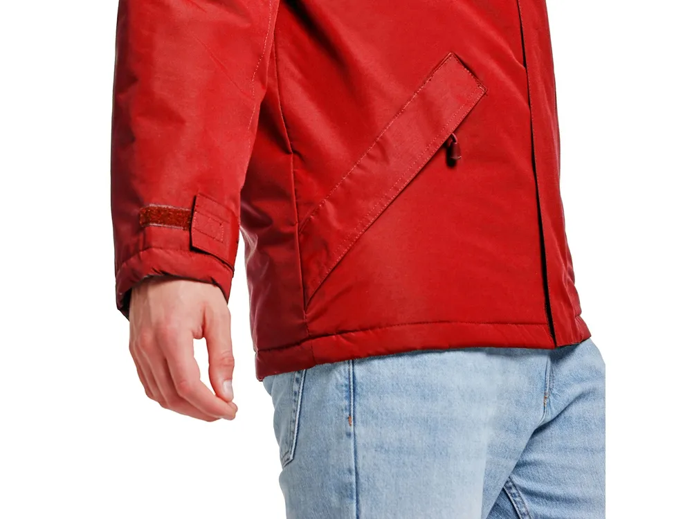 Парка с высоким воротом застегивается на молнию в тон: * капюшон складывается с застежкой на липучку * наклонные карманы с клапаном и на молнии * два внутренних кармана застегиваются на липучку * ширина манжеты регулируется шлевкой