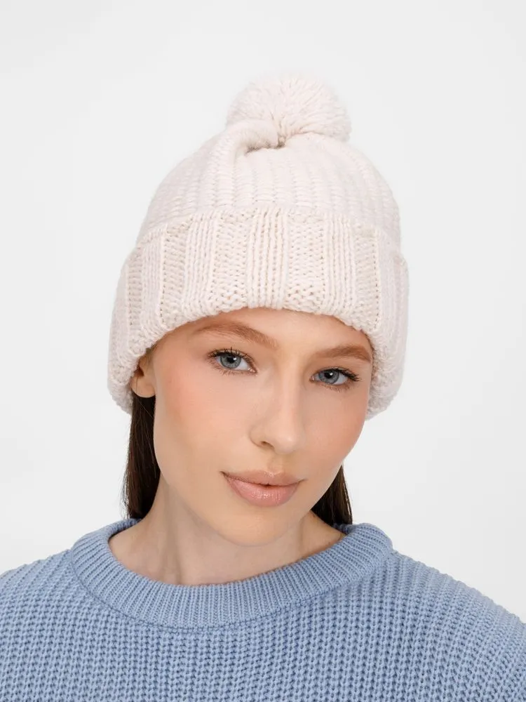 Однослойная шапка Frissonelle из полушерстяной пряжи рельефной вязки сохраняет тепло без лишней тяжести. Эластичный отворот мягко фиксирует шапку, не сдавливая голову, а пышный помпон добавляет лаконичный очаровательный акцент, завершая образ. Эта модель станет верным спутником для городских прогулок в любую погоду.