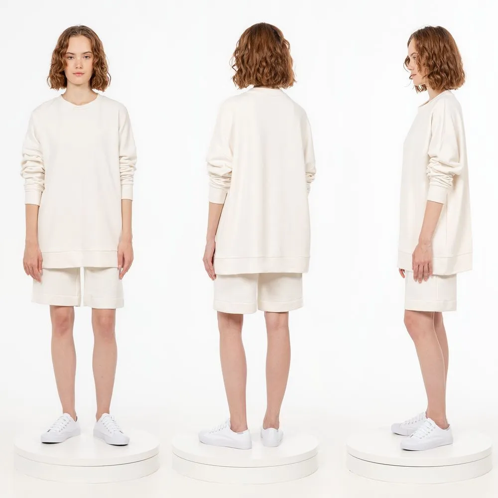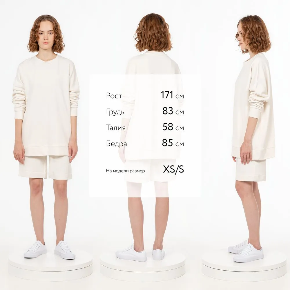 Свитшот унисекс свободной посадки со спущенным плечом.