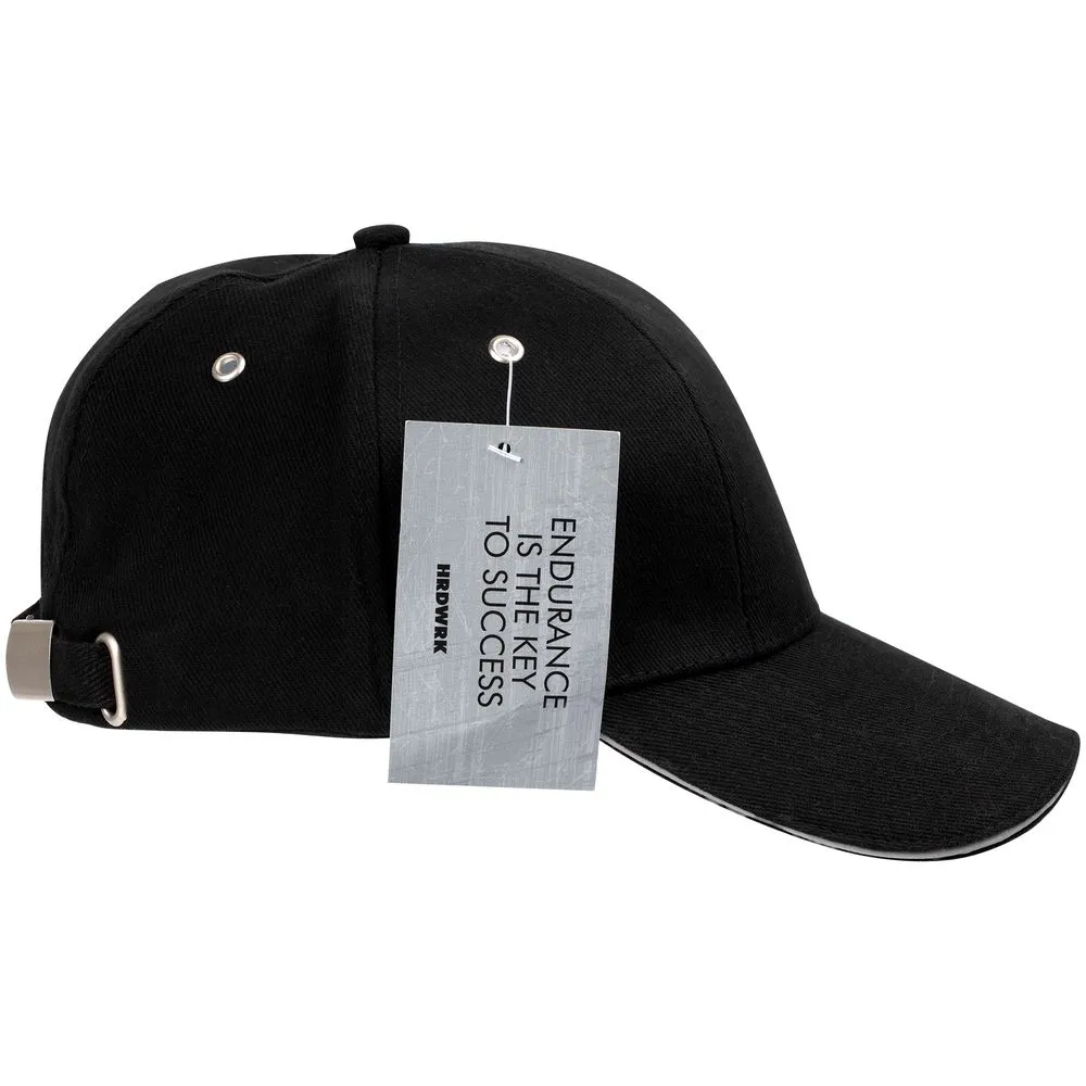 Модель: 6 клиньев без лобового шва, козырек-«сэндвич» со светоотражающим кантом, металлическая застежка и люверсы.