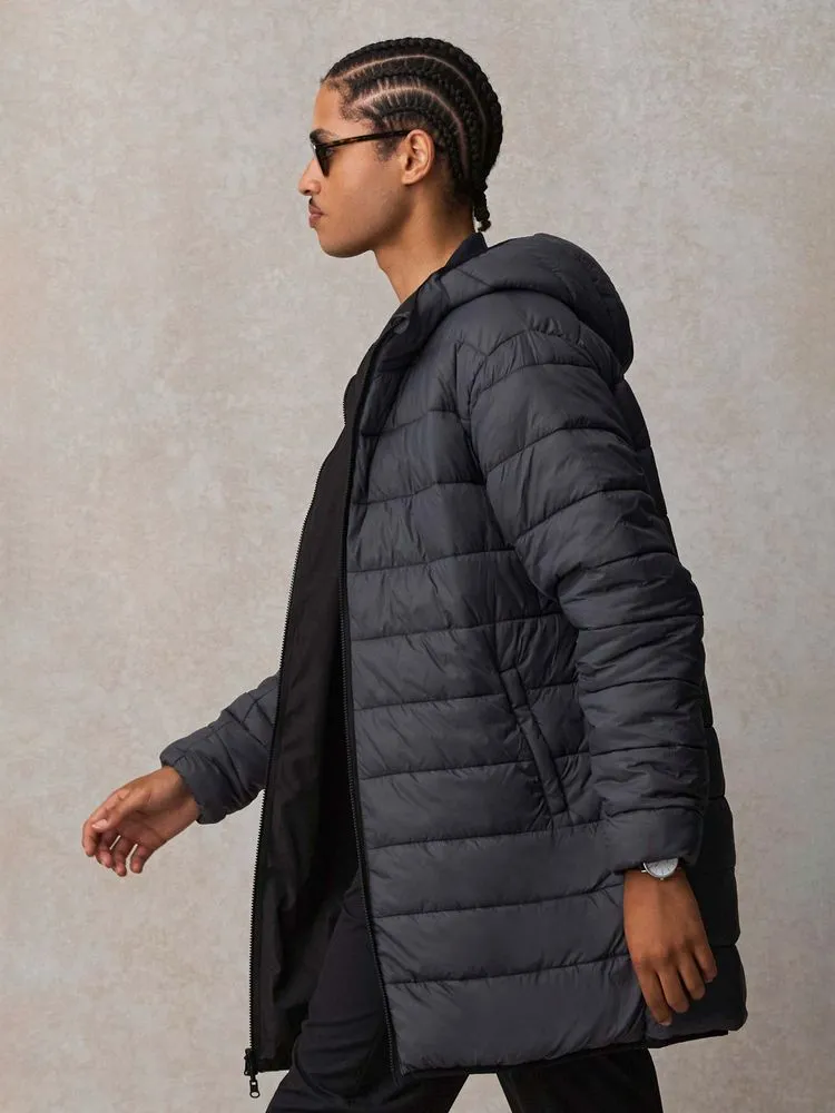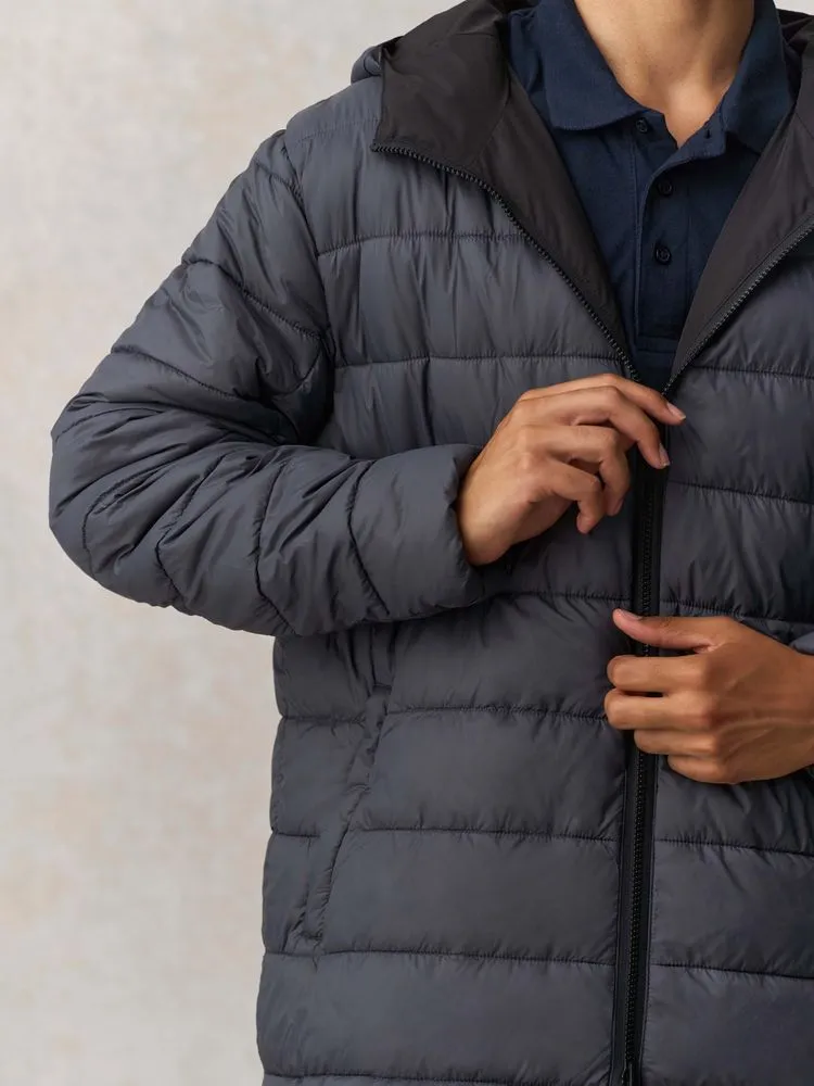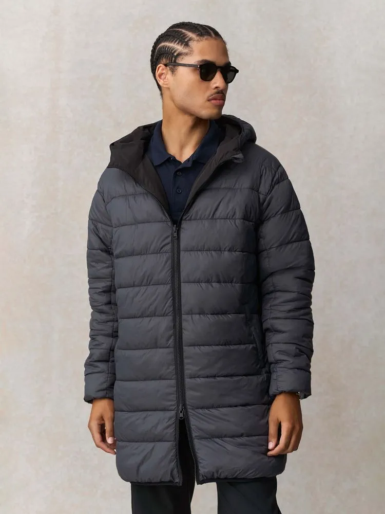 Двусторонняя утепленная парка с капюшоном. Одна сторона гладкая с водоотталкивающим покрытием, другая — стеганая. Стильная, удобная и функциональная, эта парка станет идеальным решением как для подарка, так и для повседневного использования.