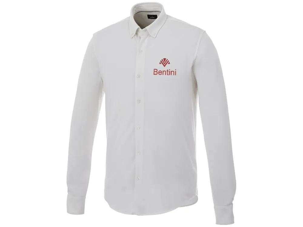 Мужская рубашка Bigelow из пике с длинным рукавом. Воротник из ткани изделия. Стрейтч-ткань. Регулируемый манжет на одной пуговице. Воротник на пуговицах. Атласная окантовка внутренней части горловины. Гравированные пуговицы в цвет изделия. Тканая метка. Двойное трикотажное пике, 95% хлопок и 5% эластан. 200 г/м².