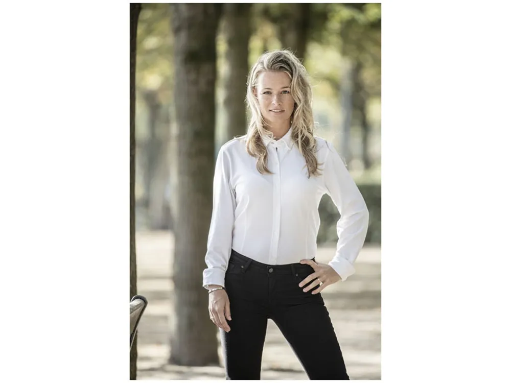 Женская рубашка Bigelow из пике с длинным рукавом. Воротник из ткани изделия. Стрейтч-ткань. Регулируемый манжет на одной пуговице. Воротник на пуговицах. Швы моделирующие фигуру и приталенный крой. Атласная окантовка внутренней части горловины. Гравированные пуговицы в цвет изделия. Тканая метка. Двойное трикотажное пике, 95% хлопок и 5% эластан. 200 г/м².